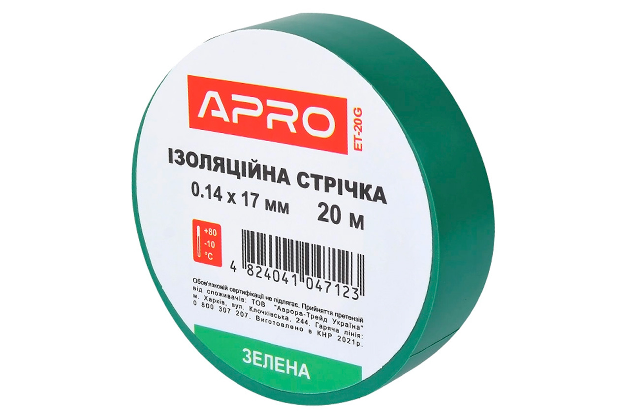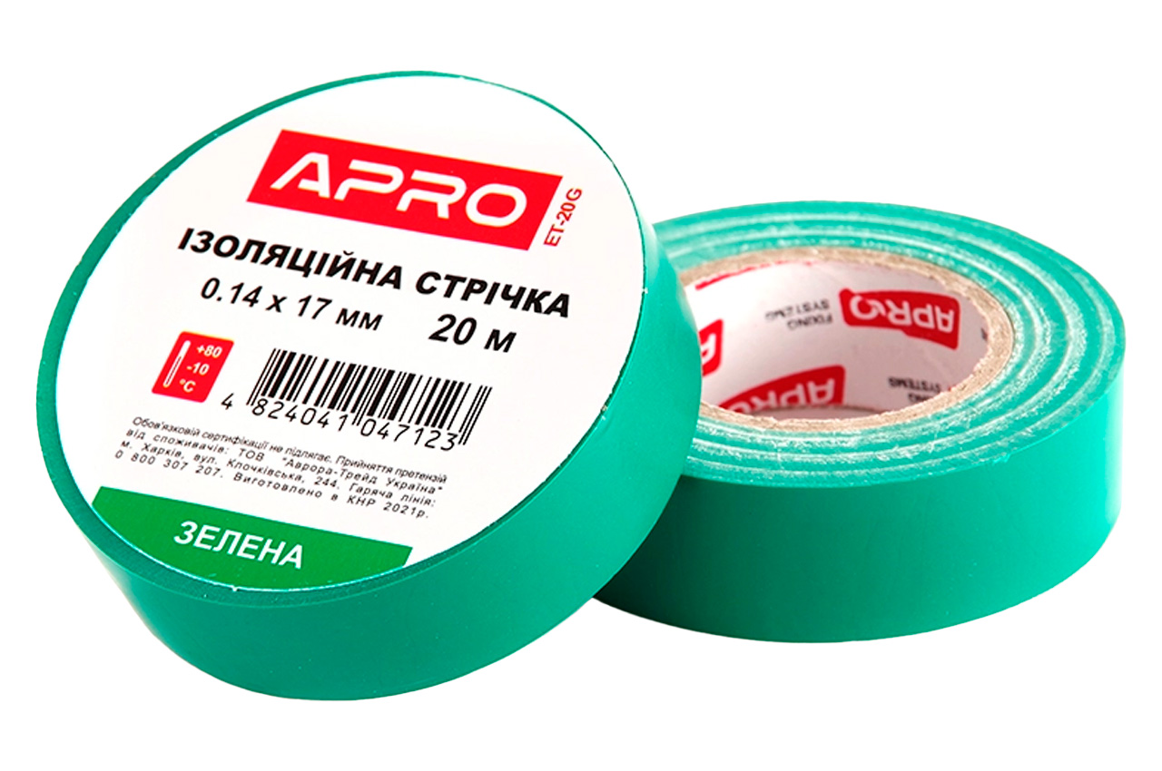 Лента изоляционная Apro - 17 x 0,14мм x 20м зеленая