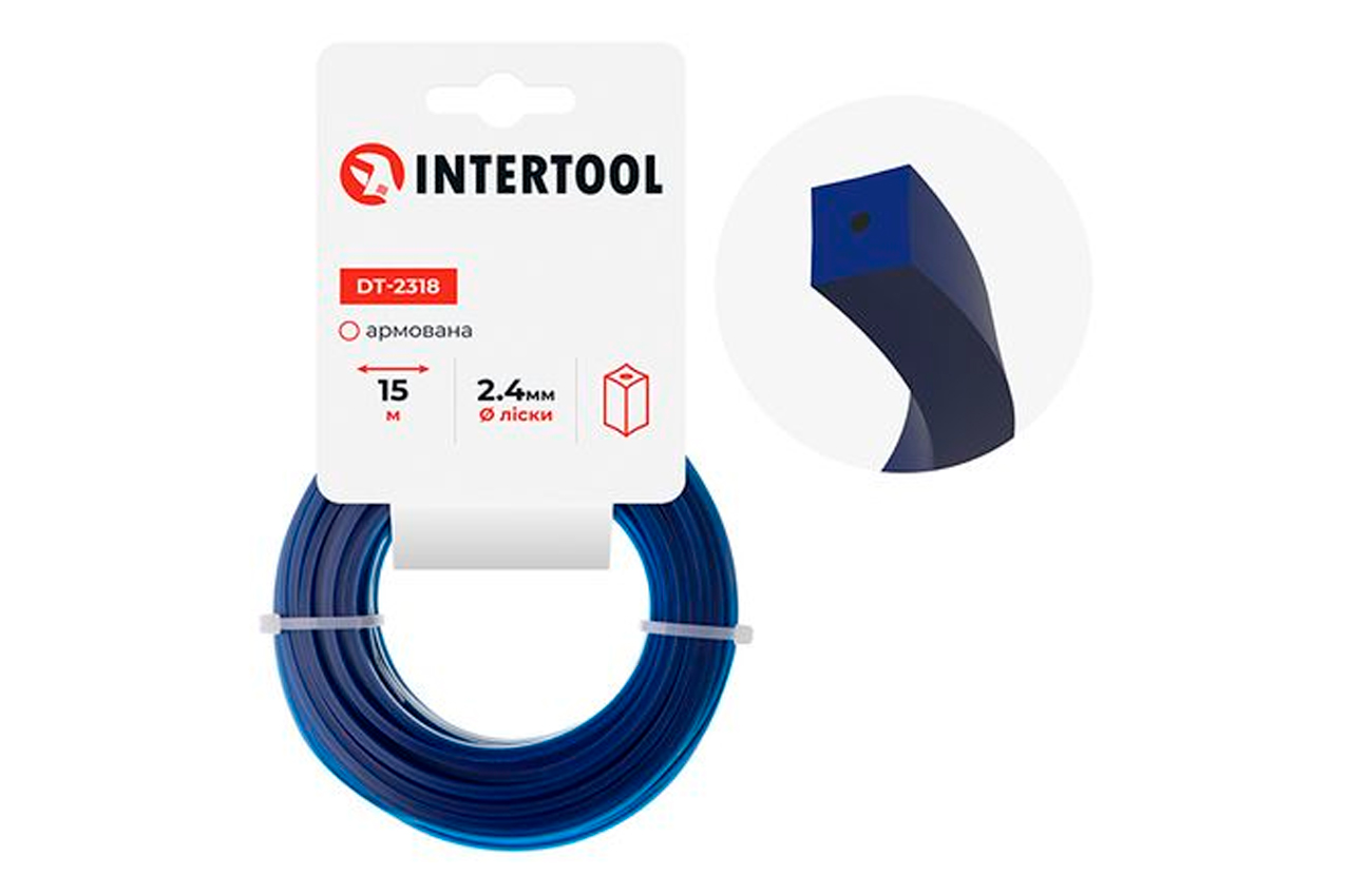 Леска для триммера Intertool - 2,4мм x 15м квадрат армированный