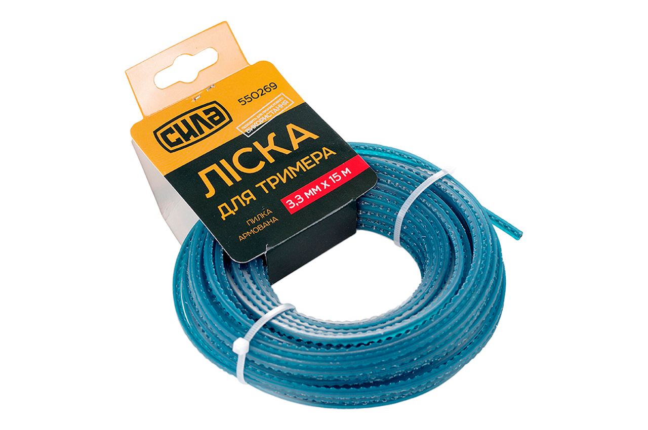 Леска для триммера Сила - 3,3 мм x 15 м квадрат пиранья армированная