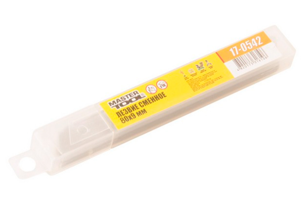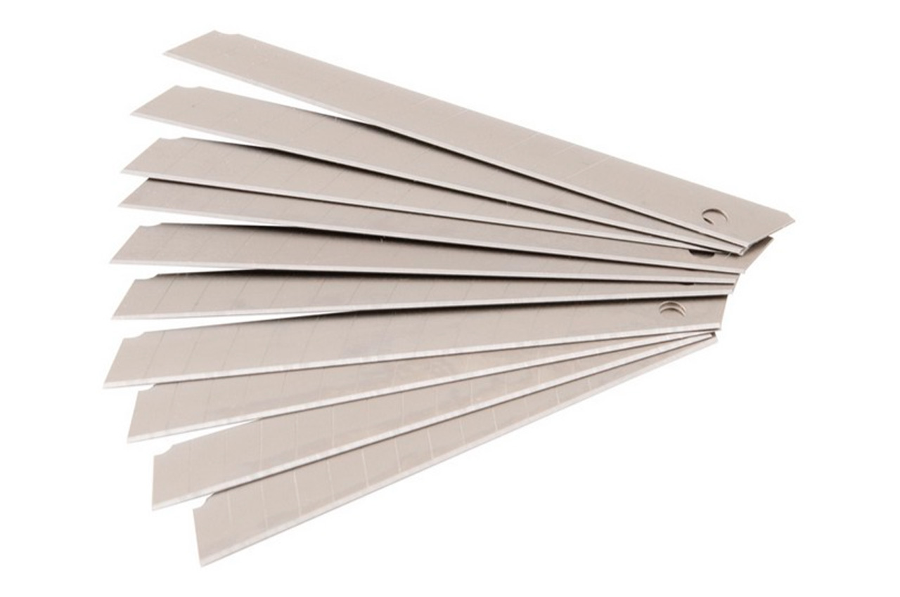 Комплект лезвий сегментных Mastertool – 10 сменных лезвий, изготовленных из высокоуглеродистой стали. Ширина полотна – 9 мм. Поставляется в пластиковом блистере. Используются с прорезными ножами для резки бумаги, картона и других подобных материалов при строительных и отделочных работах.