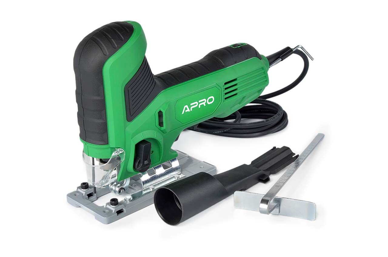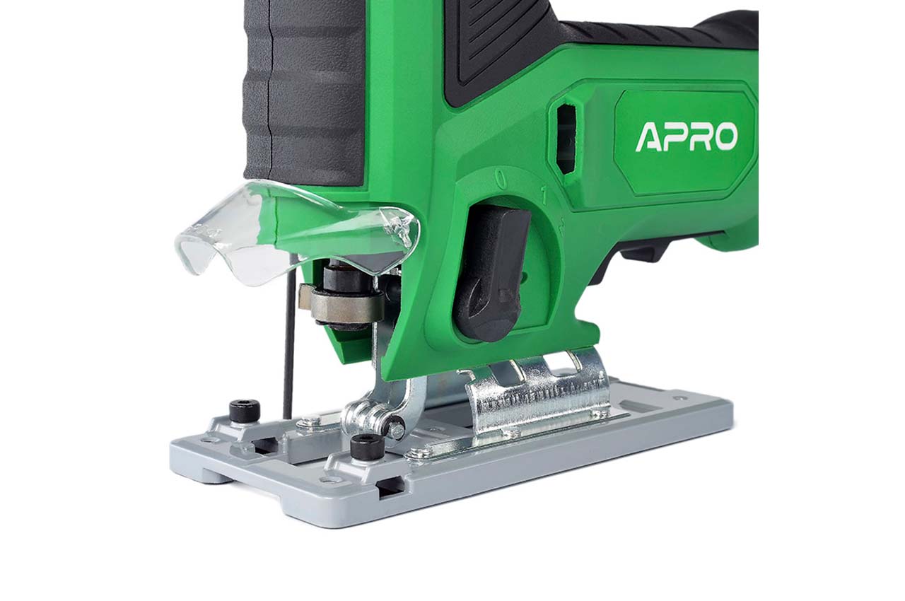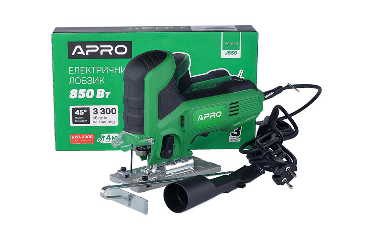 Лобзик электрический Apro J850 с регулировкой оборотов 0-3300 об/мин и маятниковым ходом – это электрический ручной инструмент с возвратно-поступательным движением пилы, предназначенный для выполнения распиловки и вырезов в древесине, синтетическом материале, металле, керамических плитах, резине. Поскольку электроинструмент имеет широкий выбор программ применения пильного полотна и вспомогательных принадлежностей, он многофункциональный и наилучшим образом подходит для угловой или круговой резки.