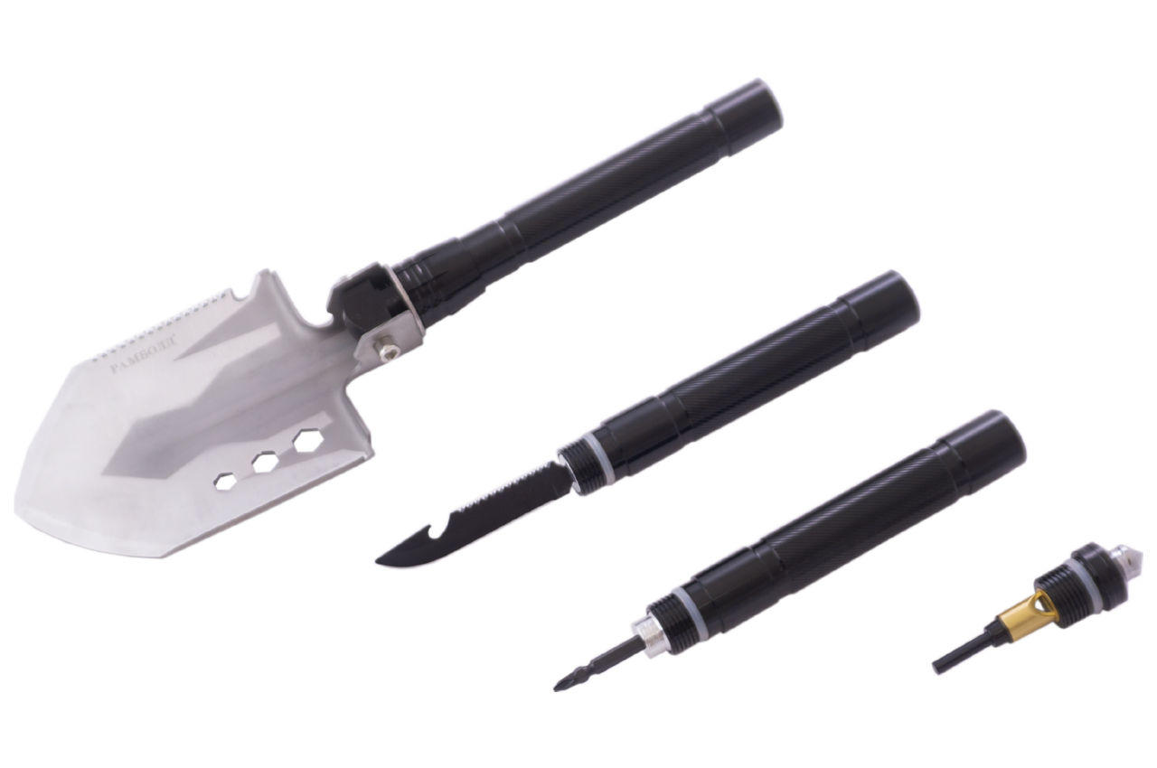 Лопата многофункциональная Рамболд - 8-в-1 M3 черная ручка представляет собой инновационную и многофункциональную разборную конструкцию, которая является истинным мультитулом. С этим компактным инструментом вы готовы к широкому спектру задач, будь то в автотуризме, охоте, кемпинге, дачном отдыхе или рыбалке.