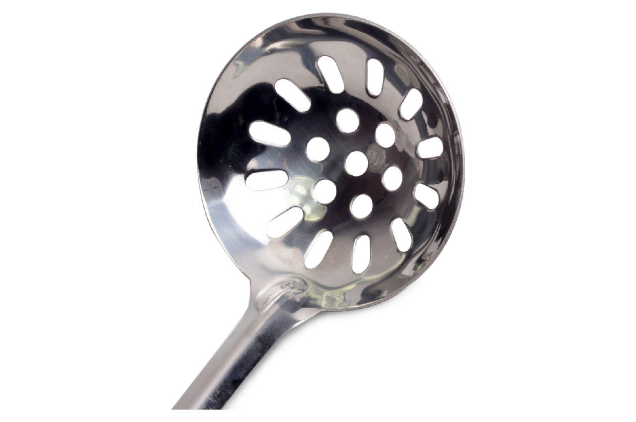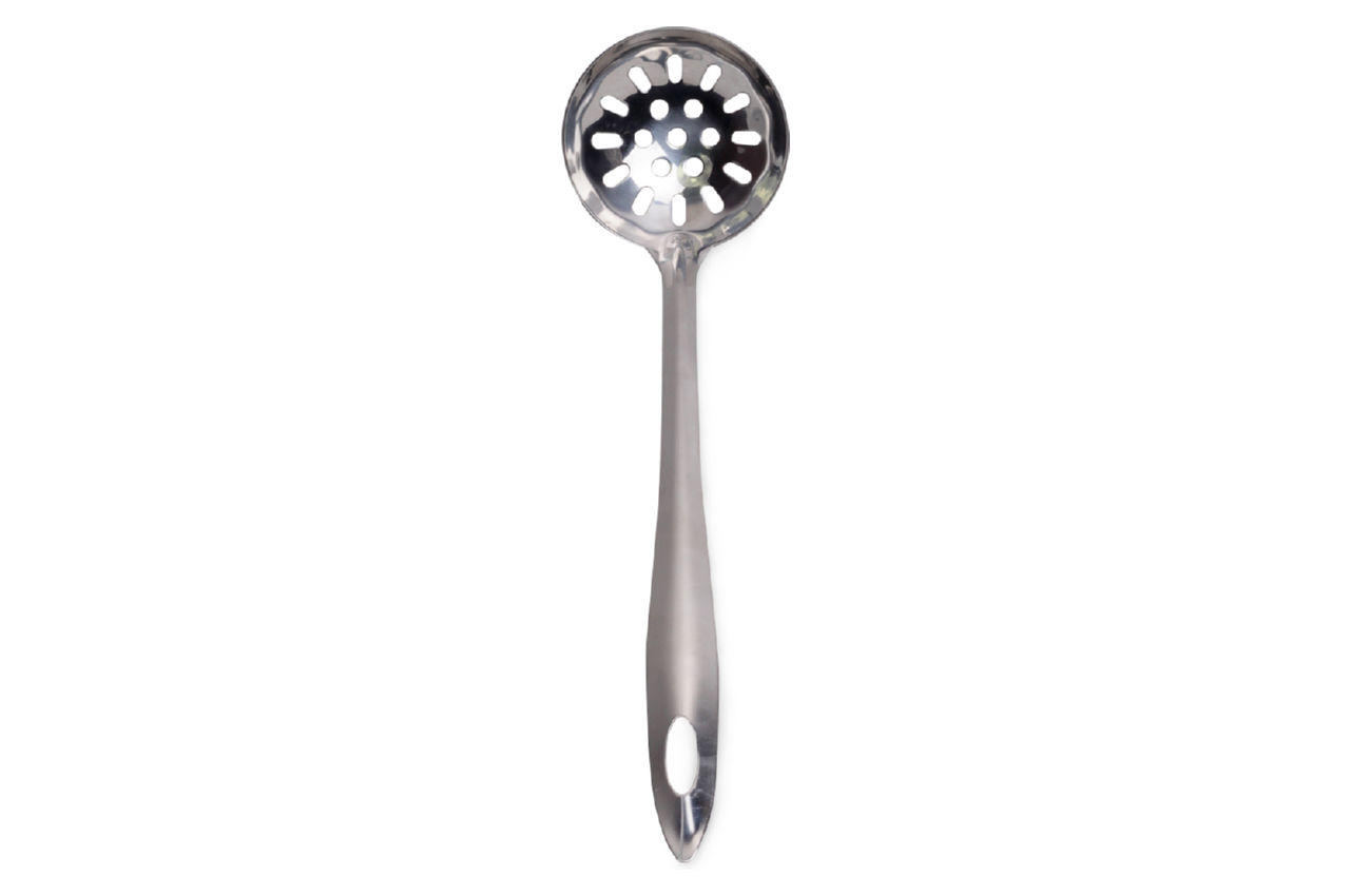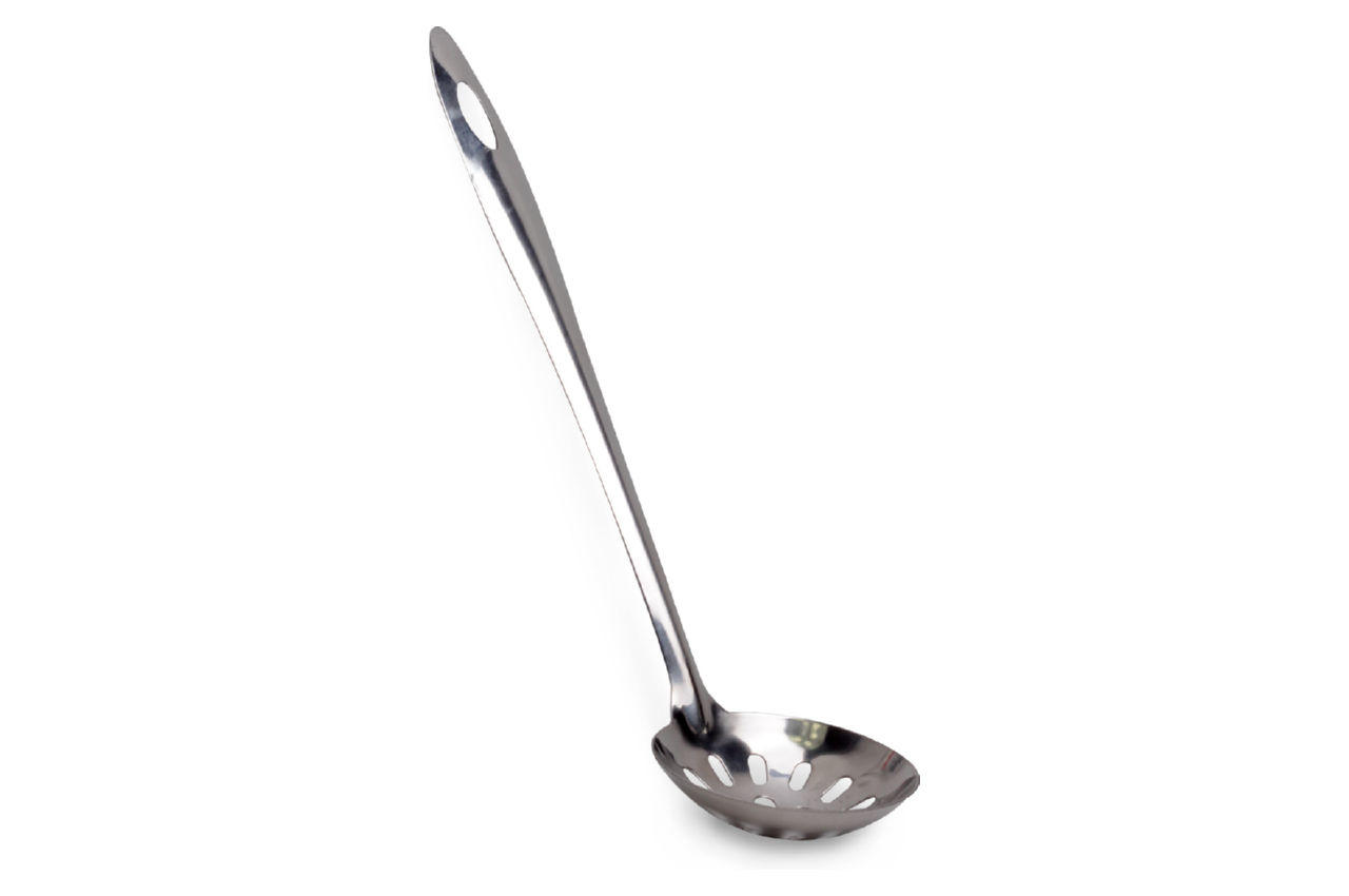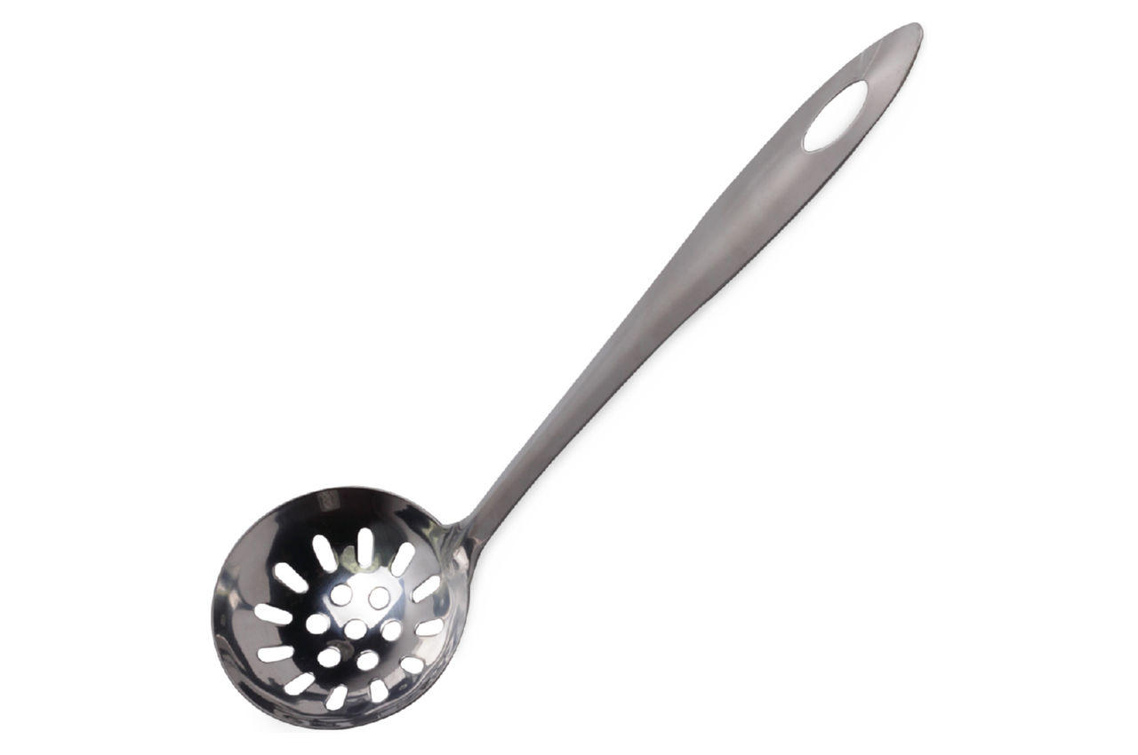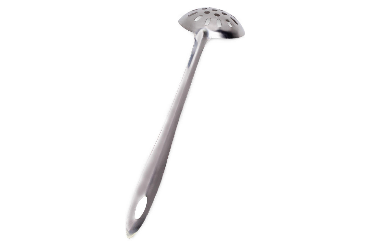 Ложка с отверстиями Kamille – отличный помощник на кухне, а ее стильный дизайн непременно подойдет к интерьеру Вашей кухни. Материал: нержавеющая сталь