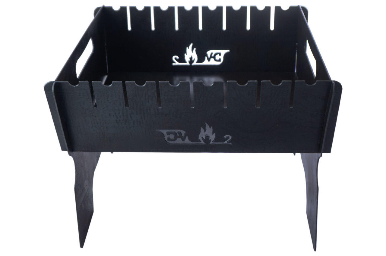Мангал складной DV – 2 мм x 8 шп – самая распространенная и самая актуальная модель. Является сложным мангалом компактных размеров на 8 шампуров для жарки мяса на природе. Изделие украинского производства изготовлено из горячекатаной стали высокого качества, что оказывает непосредственное влияние на длительный срок его службы. Металл хорошо удерживает жар, не прогорает. После эксплуатации мангал-трансформер складывается в чемодан с ручкой. Это делает транспортировку легкой и удобной. Разборка происходит за несколько минут без особого труда. В сложенном виде изделие не занимает много места. Размер: Ш38, Д35, В30