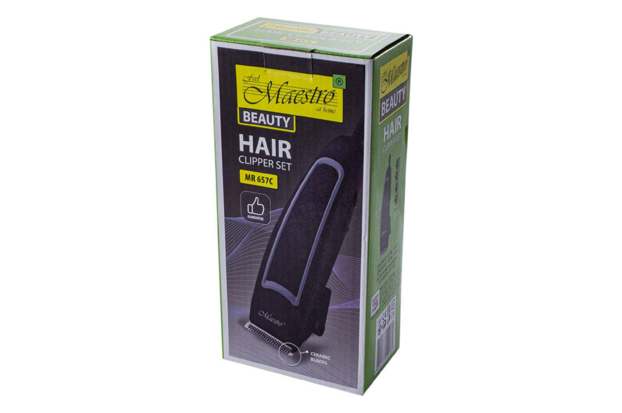 Машинка для стрижки Maestro MR-657C предназначена для использования профессионалами. Она имеет эргономично продуманный корпус, детали которого удобны в использовании. Режущие элементы остро уточнены и очень прочные. Данная машинка имеет надежные лезвия из керамик, крепкий пластиковый корпус, привлекательный внешний вид и удобство размещения в руке.