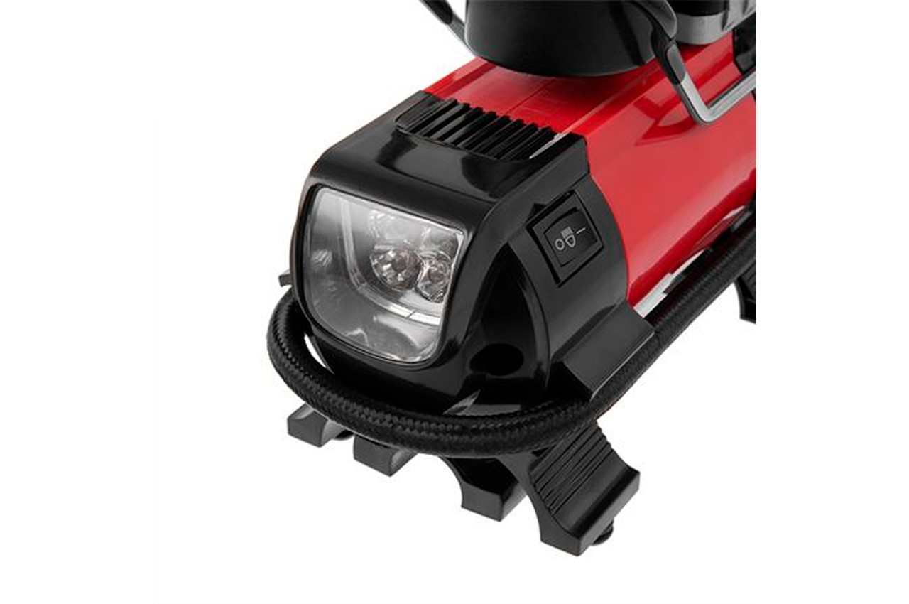 Рабочее давление до 7 атмосфер позволит накачать до рабочего состояния колеса автомобиля, мотоцикла или велосипеда, а также мячи, матрацы, круги и любые другие надувные изделия благодаря набору насадок, который поставляется в комплекте. Точный контрастный манометр для контроля текущего давления. Встроенный яркий LED-фонарик (работает от обычных батареек). Гибкий шланг в тканевой оболочке длиной 70 см долговечен и удобен в работе. Резиновые антивибрационные ножки сделают работу компрессора максимально тихой. Питание от автомобильной сети 12В. Один цилиндр 19 мм. Максимальный ток: 15 А; Максимальное давление: 7 бар; Длина шланга: 70 см; Производительность: 20 л/мин; Напряжение питания: 12 В; Особенности: диаметр поршня 19 мм