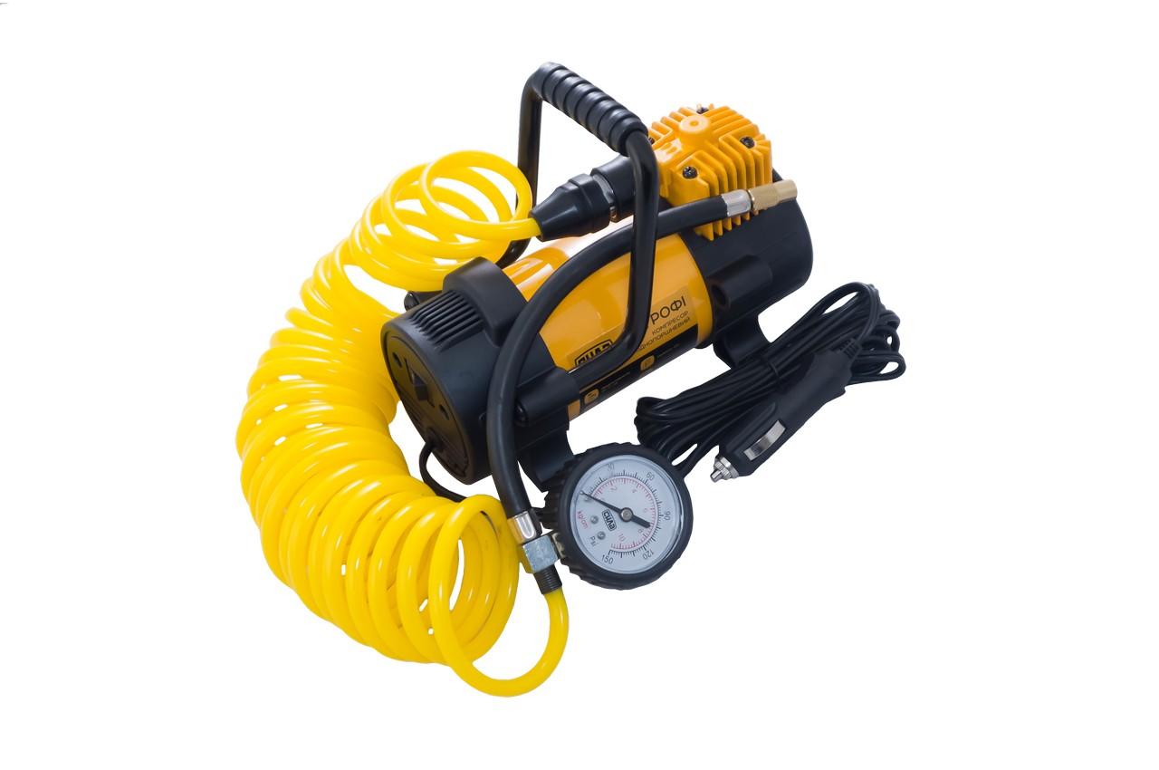 Автомобильный компрессор Сила10 атм x 40 л/мин однопоршневой применяется для накачки шин различной техники и резиновых изделий. Компрессор имеет компактный размер, а также удобную складную ручку для его перемещения. Резиновые упоры исключают опрокидывание прибора во время функционирования. В верхней части расположен манометр для контроля давления воздуха в шинах. К компрессору прилагается удобный чехол на застежках. В таком чехле прибор не только удобно хранить, но еще и транспортировать его. Для него всегда найдется место в отсеке багажника любого автомобиля. Длина сетевого провода: 3 м; Максимальная продолжительность непрерывной работы: 30 мин; Напряжение: 12 В; Тип подключения: Прикуриватель автомобиля