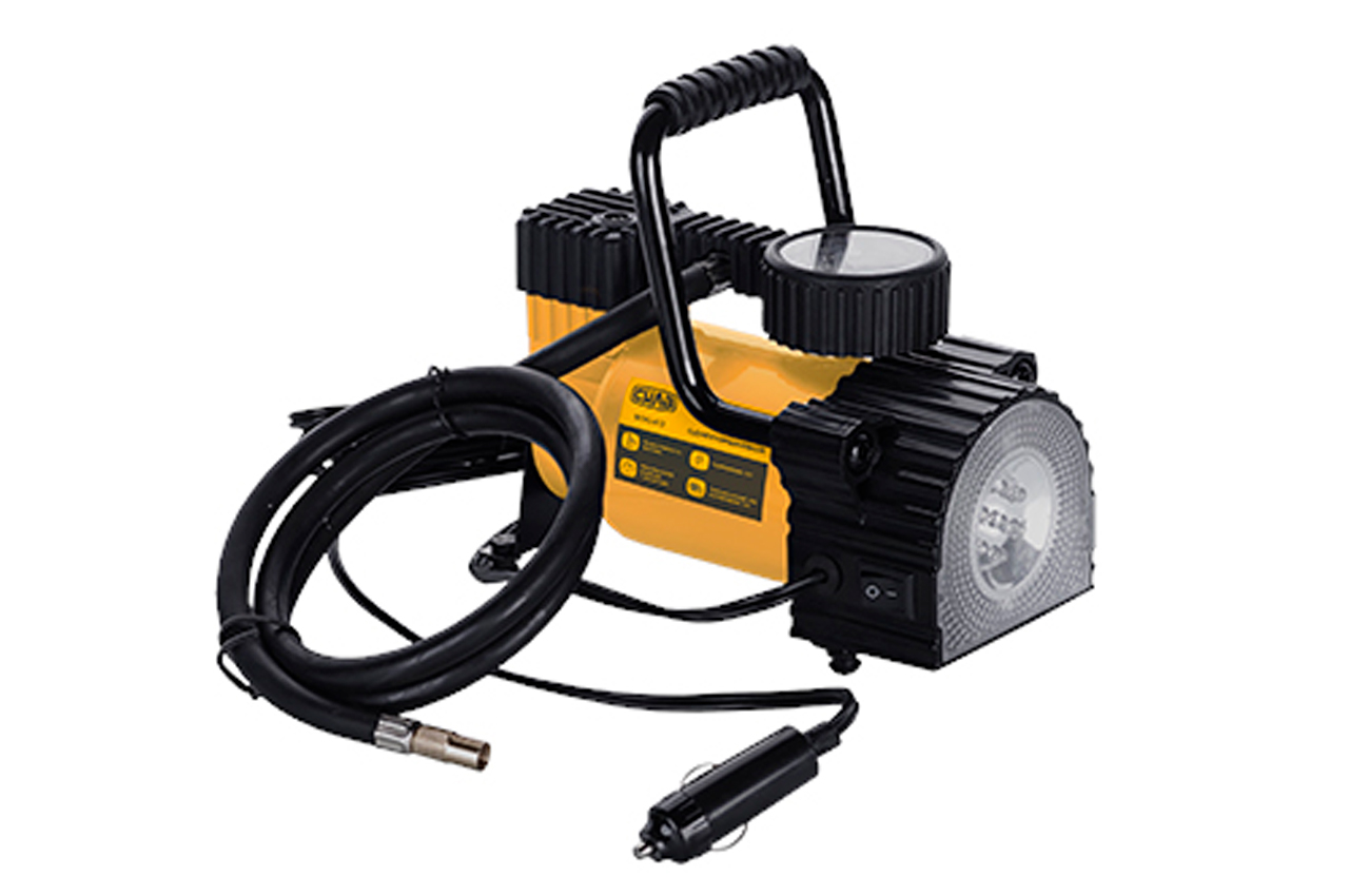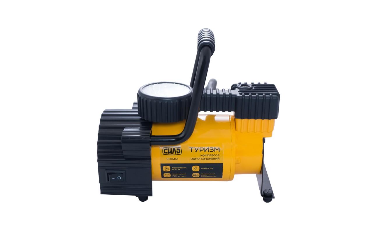 Миникомпрессор автомобильный Сила - 7 атм x 35 л/мин однопоршневой с фонариком