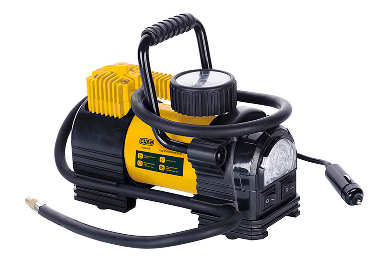 Миникомпрессор автомобильный Сила - 7 атм x 37 л/мин однопоршневой с фонариком