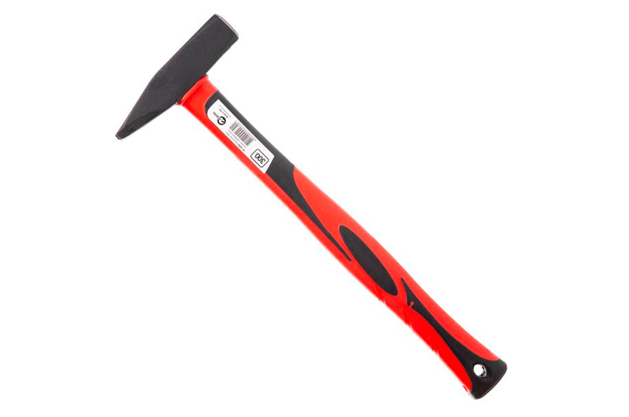 Молоток слесарный – самый простой и распространенный тип рабочего инструмента. Предназначен для забивания, разбивания, загибания или выпрямления деталей. Заострённый край в виде клина позволяет забить гвоздь с маленькой шляпкой и выполнить работу в труднодоступном месте, куда не поместиться широкая часть головы. Ручка выполнена из фибрегласса (стекловолокна) – материала, который хорошо проявил себя в использовании. Не скользит в руке и помогает снизить силу отдачи при ударе.