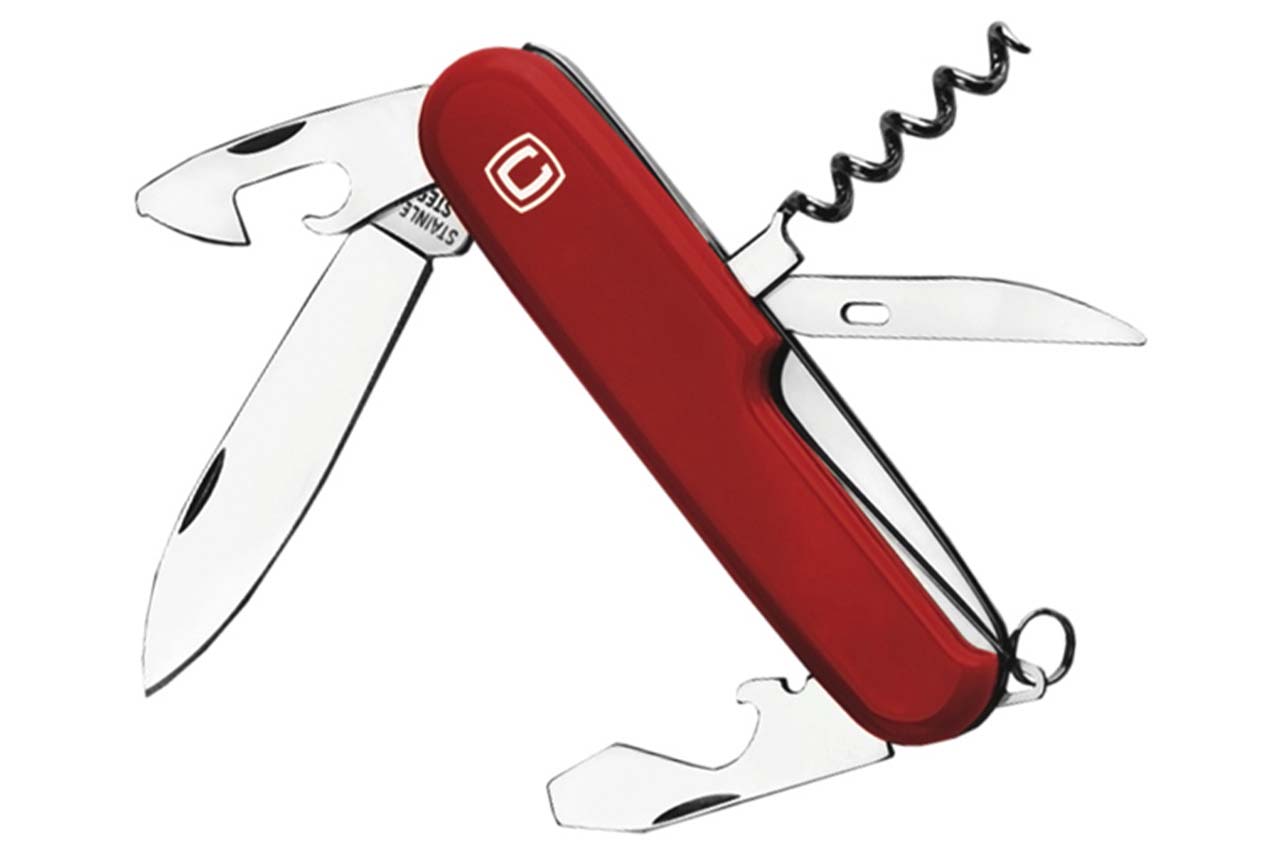 Мультитул Сила - 7-в-1 - изготовлен из нержавеющей стали, с накладками из пластика ABS, она не ржавеет и легко затачивается. Поставляется в чехоле из нейлона. Комплектация: - Лезвие ножа - Открывашка бутылки - Открывашка жестяных банок - Штопор - Плоская отвертка - Дырокол для кожи - Кольцо для ключей.