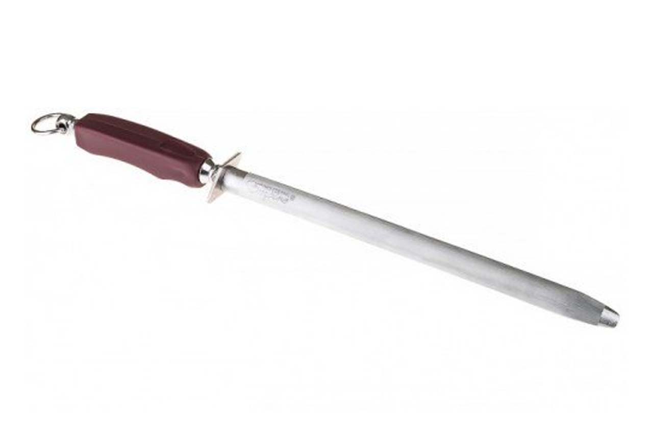 Мусат профессиональный (точило для ножей) Empire с полуовальным сечением. Инструмент редактирования лезвий ножей. Предназначен для профессионального и домашнего интенсивного использования. Ручка усилена, с подвесным кольцом. Легкий в уходе, не впитывает запахи и не окрашивается. Можно мыть в посудомоечной машине.
