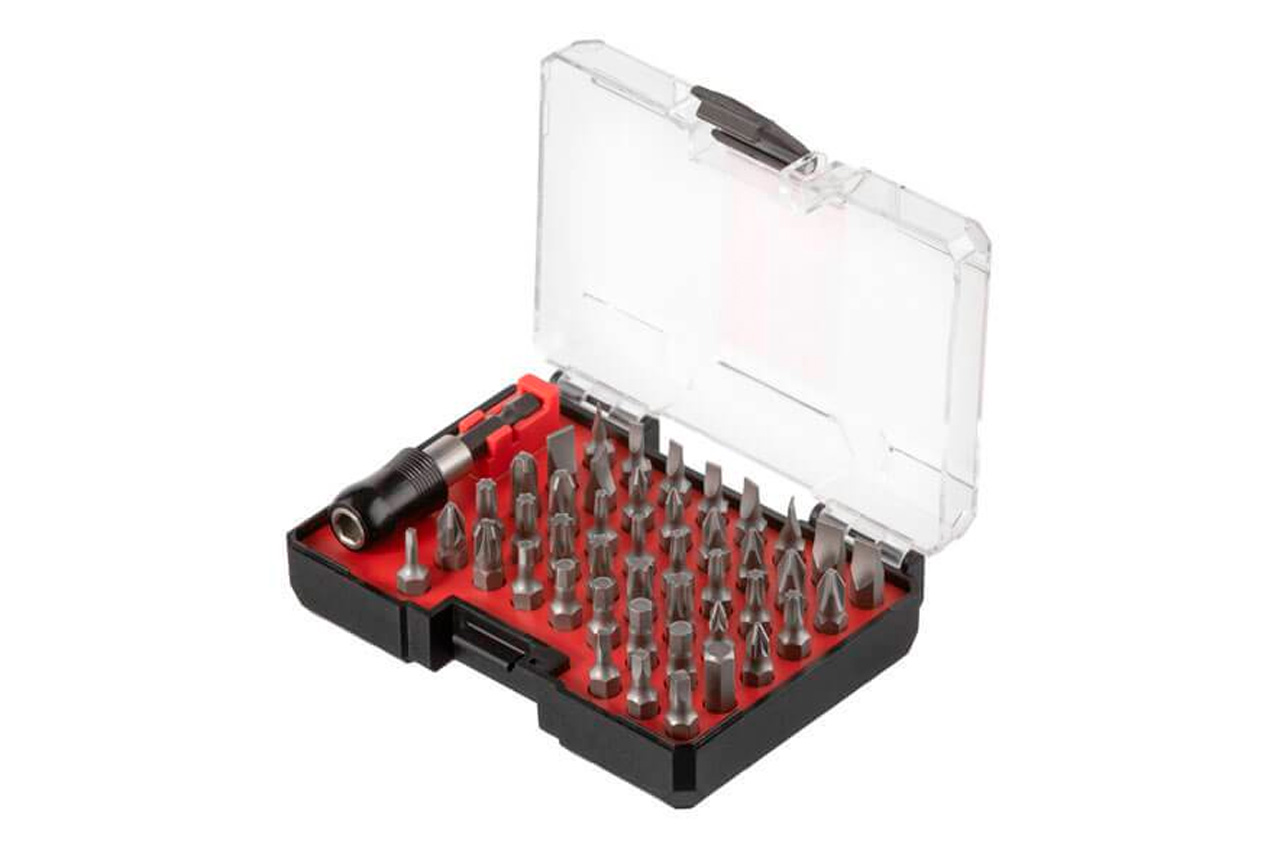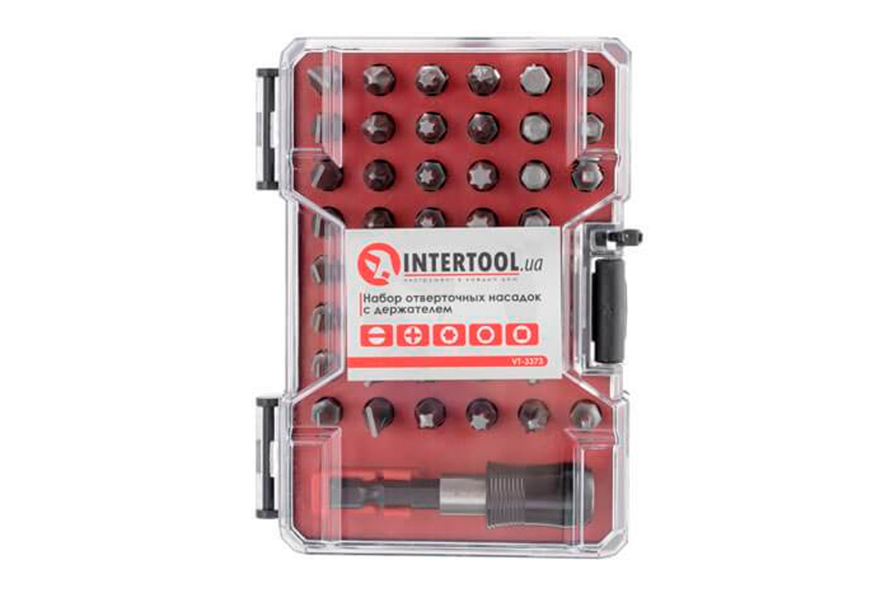 Набор отверточных насадок с держателем VT-3373 может использоваться как оснастка для шуруповертов, дрелей, так и для отверток под биты. Комплект предназначен для монтажа и демонтажа резьбовых соединений с различными типами шлицов. Данный набор станет отличным помощником в домашнем арсенале инструмента, а также в собственной мастерской, на производстве. Все инструменты изготовлены из прочной Cr-V стали, которая известна всем мастерам своей надежностью и выносливостью. В держателе установлен магнит, который надежно фиксирует биты и облегчает вкручивание винтов. Все насадки размещены в удобном кейсе с замком.