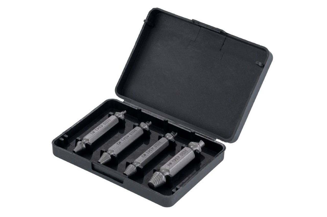 Набор экстракторов для винтов под шуруповерт Intertool – 5 x 6 x 8 x 10мм (4шт). Набор содержит четыре самых популярных размера экстракторов: 5, 6, 8, 10 мм. Размер подбирается исходя из параметра крепления. По диаметру он не должен совпадать или быть больше диаметра извлекаемого крепления. Изготовлены инструменты из закаленной быстрорежущей стали, благодаря чему будут эффективно работать в течение длительного времени. Благодаря шестигранной форме экстракторы подходят к любым моделям дрелей и шуруповертов. Поставляются в компактном пластиковом кейсе.