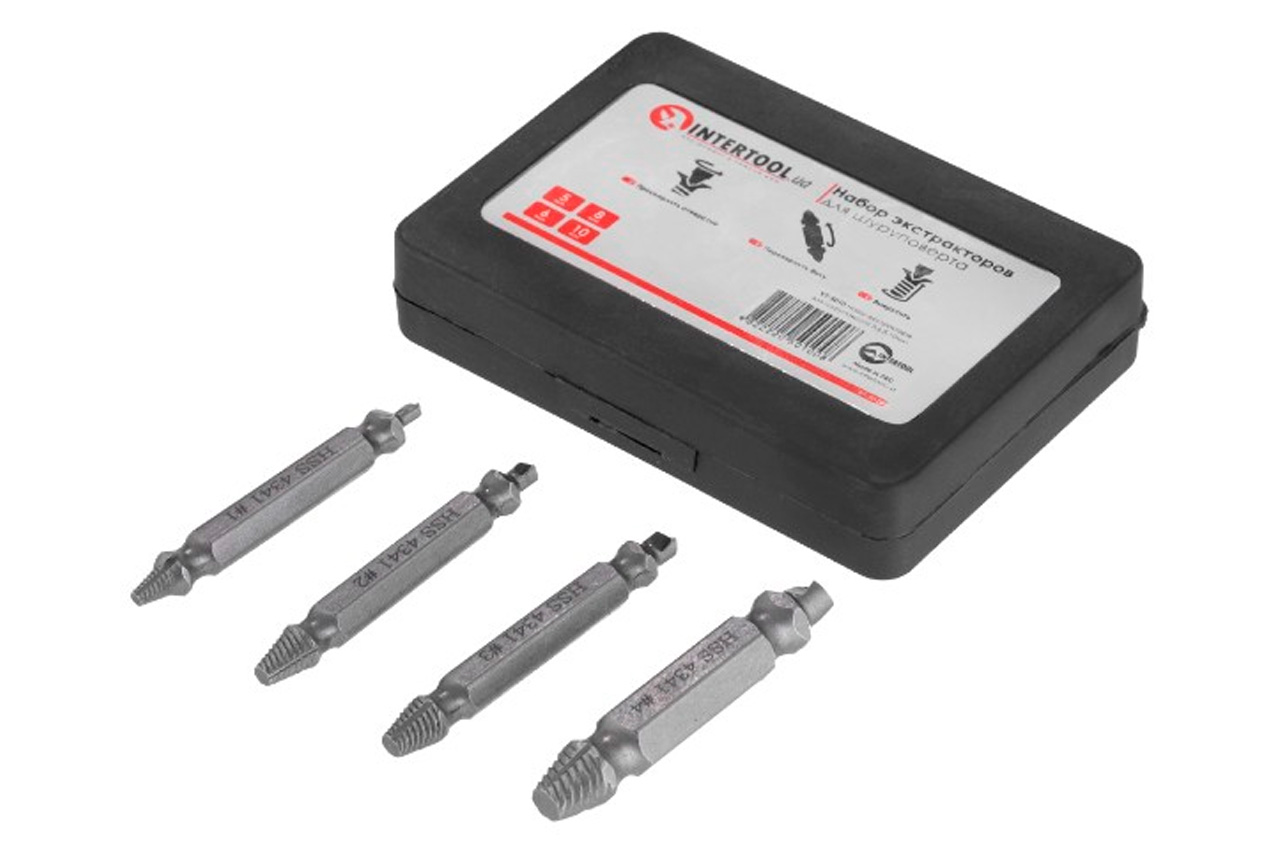 Набор экстракторов для винтов под шуруповерт Intertool - 5 x 6 x 8 x 10мм (4шт)