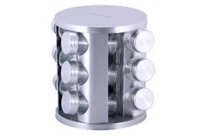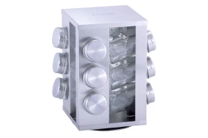 Набор Maestro MR 1725 состоит из 12 ёмкостей для специй объёмом 100 мл на стойке, баночки изготовлены из стекла с закручивающейся стальной крышкой. Удобно размещаются в четыре ряда (по 3 штуки в ряду) на стальной подставке с сатиновой полировкой.