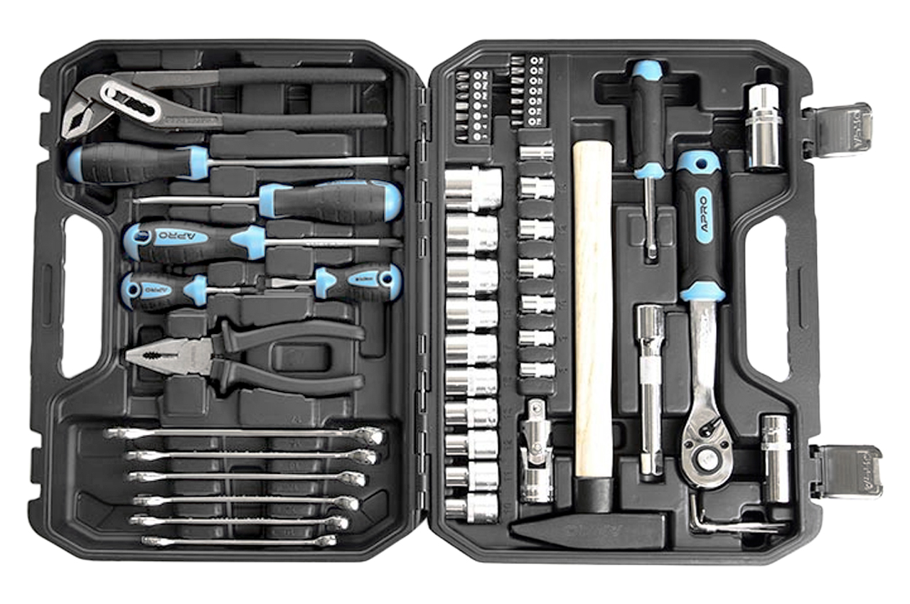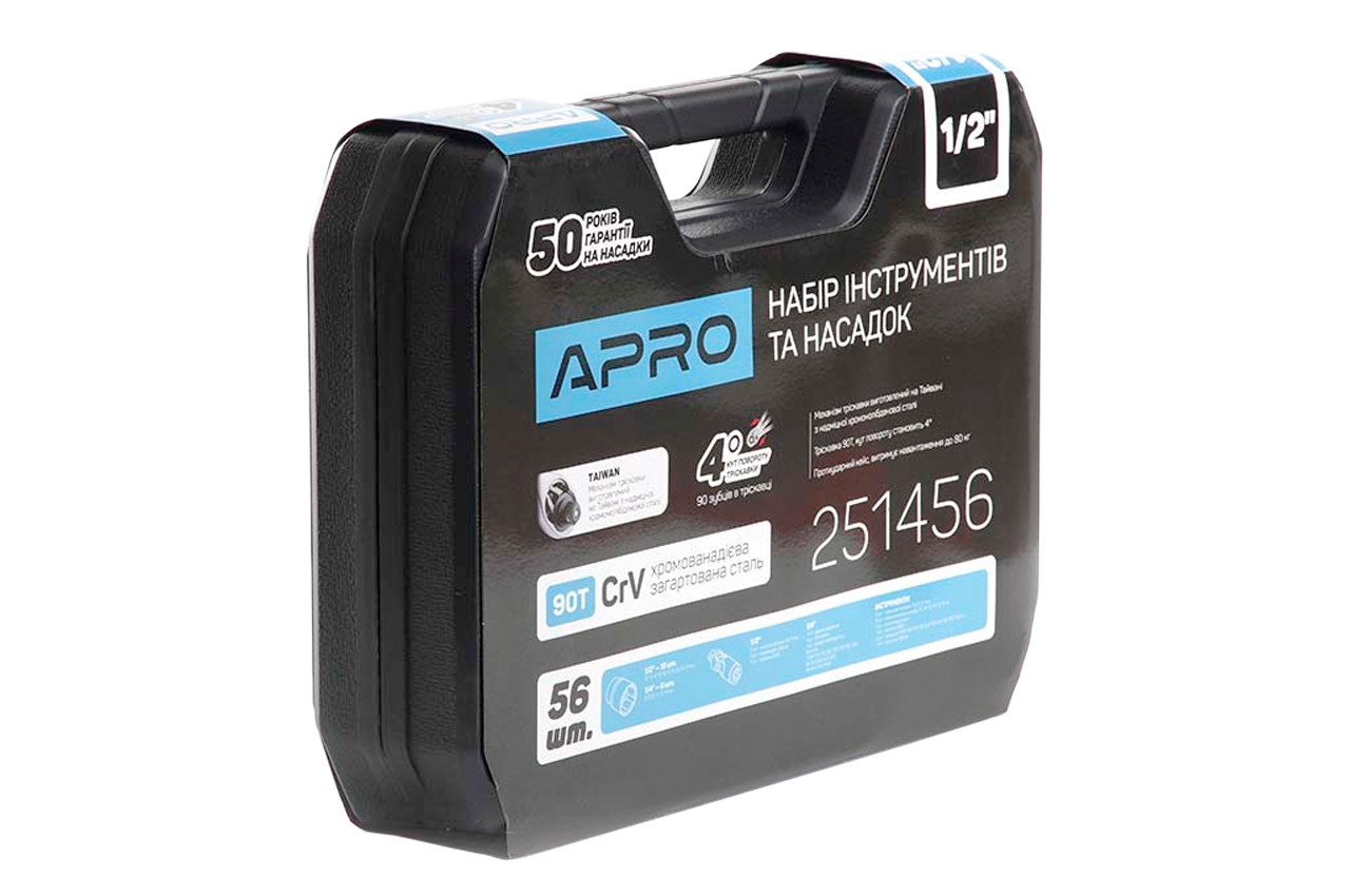 Набор инструментов APRO 251456 - универсальный набор для ремонтно-монтажных работ, состоящий из 56 предметов. Все инструменты помещены в удобный пластиковый кейс, не занимающий много места и позволяющий хранить инструментарий в первоначальном виде. Все инструменты изготовлены из качественной хром-ванадиевой стали, не боятся коррозии и устойчивы к разным механическим повреждениям. Инструмент оснащен прорезиненными ручками, не скользящими даже во время интенсивной работы. В комплекте идет пластиковый кейс, для удобного хранения и транспортировки инструмента.