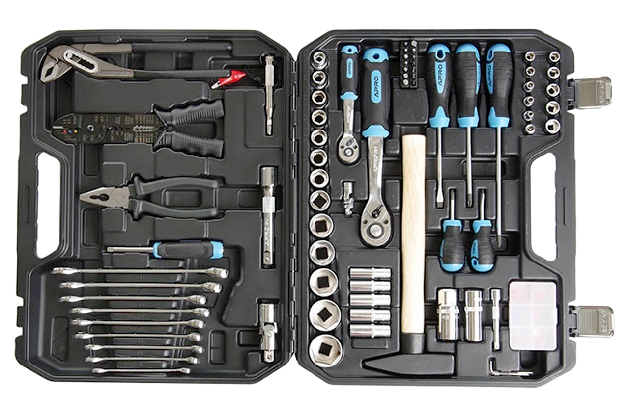 Набор инструментов Apro – компактный и практичный для использования в авто. Такой набор удобно держать под рукой, он не занимает много места в салоне и очень функциональн. Комплектация: Насадки глубокие 1/4": 9, 10, 11, 12, 13 мм. Удлинитель 1/2": 125 мм; 1/4": 50 мм Шарнир карданный 1/2"; 1/4" Насадки свечные 1/2": 16; 21 мм Биты 1/4" TORX: T15, T20, T30; SL: SL4, SL5.5, SL7; PH: PH1, PH2, PH3 Битодержатель 1/4" Ключи шестигранные 1.5, 2, 2.5 мм. Зубы в трещине 90 Ключи рожково-накидные 8, 10, 11, 12, 13, 14, 15, 17, 19 мм Насадки 1/4 4, 5, 6, 7, 8, 9, 10, 11, 12, 13 мм Насадки 1/2 10, 11, 12, 13, 14, 15, 17, 19, 22, 24, 27, 30, 32 мм Материал хром-молибденовая сталь