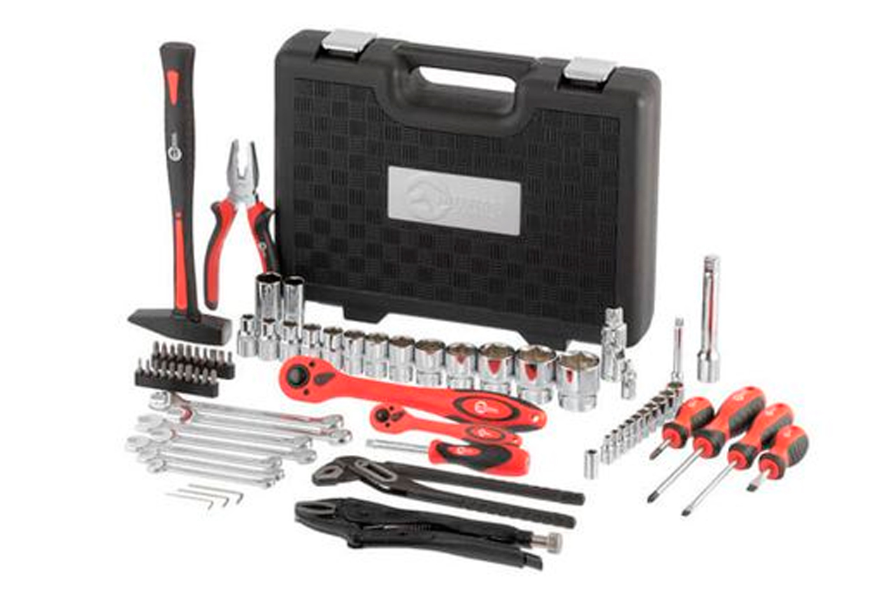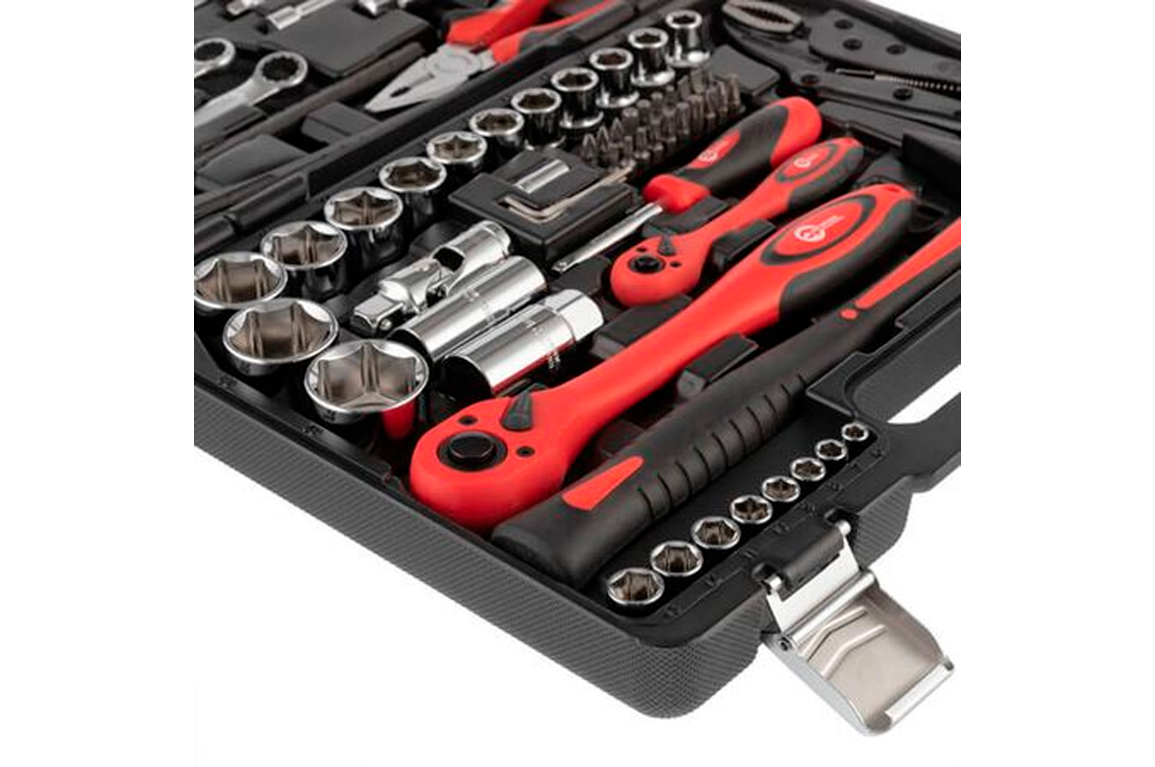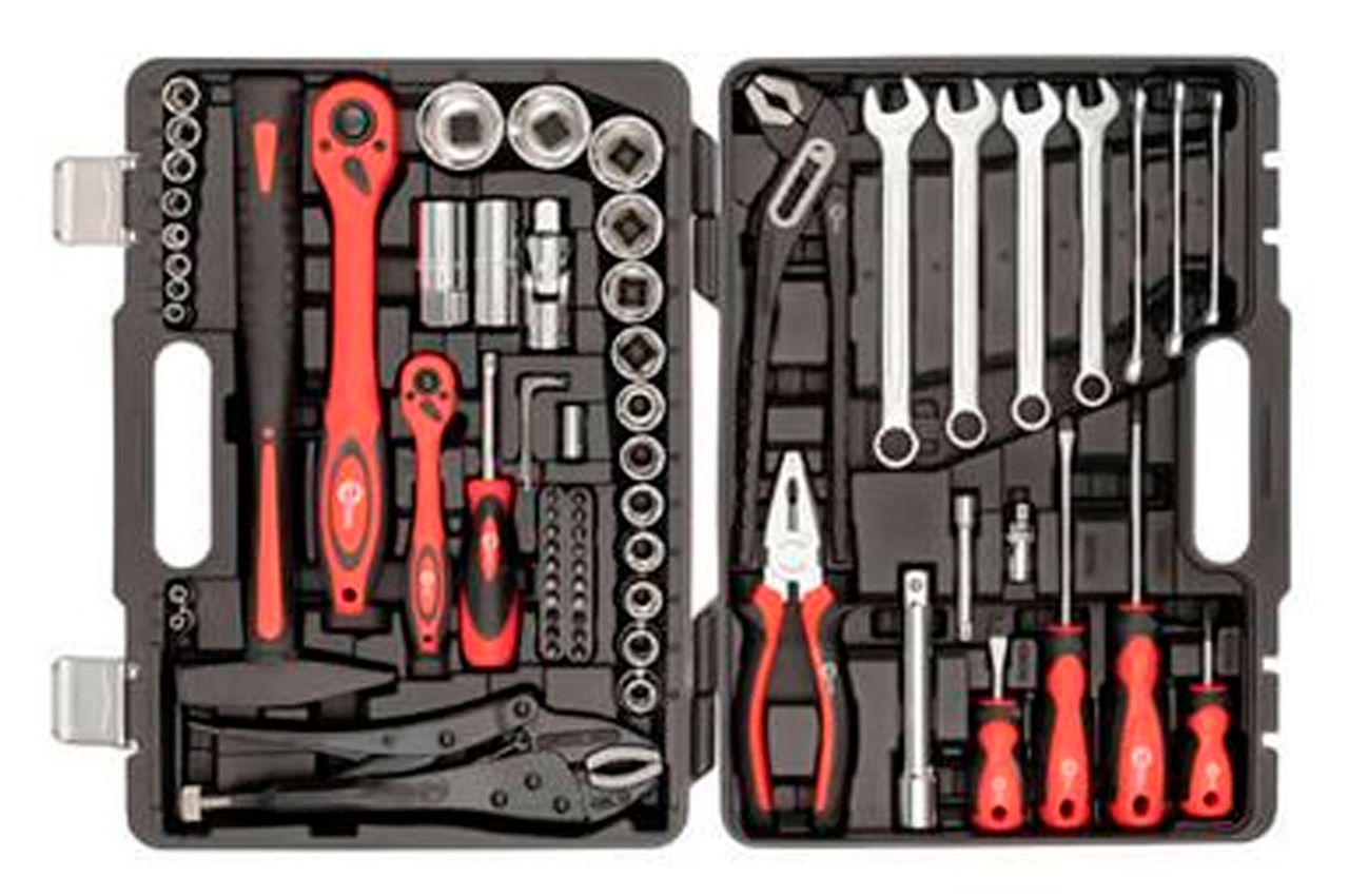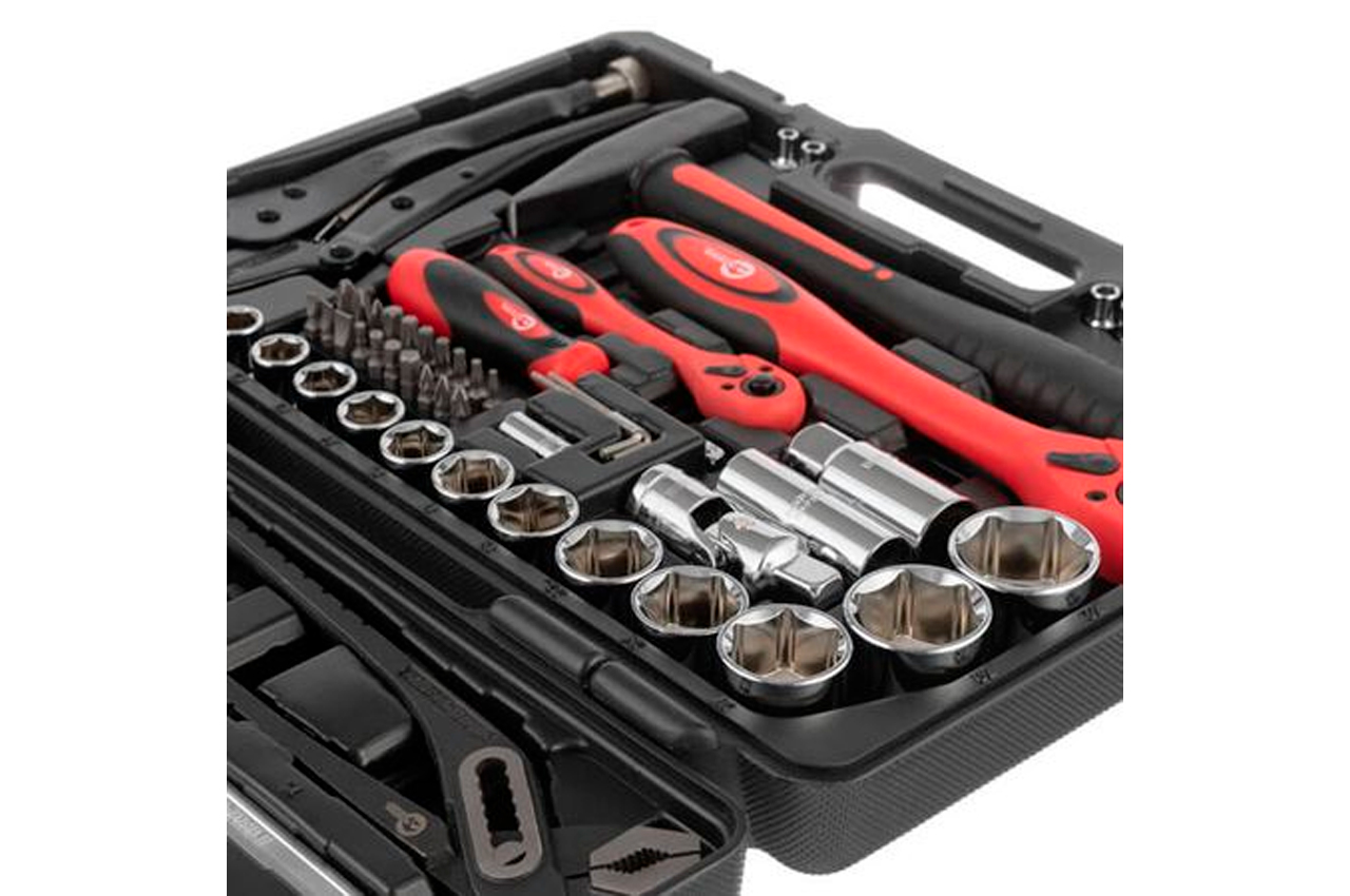 Набор включает в себя 72 единицы с рабочими квадратами 1/2" и 1/4", и предназначен не только для ремонта автомобилей. На нижней крышке расположены 28 торцевых головок диаметром от 4 до 32 мм. На верхней крышке находятся 8 комбинированных ключей диаметром от 10 до 19 мм, клещи, плоскогубцы и различные отвертки. Кроме того, в его состав вошли 2 удлинителя 50 и 125 мм, 3 шестигранных ключа, 2 свечные головки 16 и 21 мм, переходники, карданчики и многие другие полезные мелочи. Габаритные размеры: 400х300х90 мм; Размер рожково-накидных ключей: 10-19 мм; Квадрат: 1/2"1/4"; Количество единиц в наборе: 72 ед.; Материал чемодана: пластик