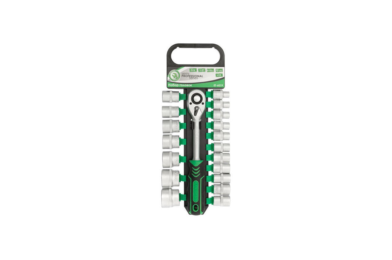 Набор состоит из 19 предметов. Предназначен для монтажа и демонтажа резьбовых соединений при ремонте автомобиля, техники и других разноплановых бытовых задач. В набор вошли часто применяемые размеры головок от 8 до 32 мм. Особенности Прочная, не подвержена коррозии Cr-V сталь; Удобная трещотка на 72 зуба; Компактный держатель – переноска. Трещотка и шестигранные головки изготовлены из высокопрочной легированной стали с присадками хрома и ванадия. Все инструменты выдерживают значительные нагрузки, обладают большой механической прочностью, а также упругостью, что важно при передаче крутящего момента от инструмента на крепеж. Не подвержены появлению ржавчины, тем самым дольше служат Вам! Трещотка на 72 зуба с плавным ходом, быстрым сбросом и фиксацией головок. Позволяет подлезть в самые труднодоступные места. Рукоятка трещотки двухкомпонентная и не скользит у Вас в руках, тем самым гарантирует максимум удобства в работе. Головки и трещотка надежно фиксируются на держателе – переноске. Большая ручка на корпусе позволит удобно транспортировать весь набор или подвесить его на гвоздик. Комплект не займет много места на полке или в багажнике. Крути крепежи уверенно! Комплектация -Трещоточная рукоятка 1/2" 72 зуба, реверсионная, двухкомпонентная ручка; -Шестигранные торцевые головки, 18 шт.: 8, 9, 10, 11, 12, 13, 14, 15, 16, 17, 18, 19, 20, 22, 24, 27, 30, 32 мм. Квадрат: 1/2"; Длина держателя-переноски: 375 мм