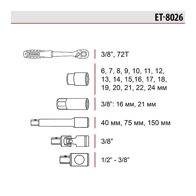 Набор инструмента Intertool - 3/8" 26 ед. Storm
