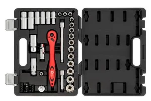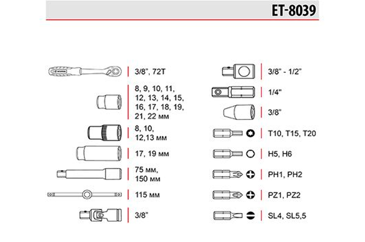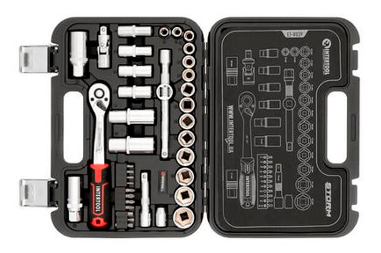 Наборы инструментов STORM - это новое слово в поддержку качества и многофункциональности! Благодаря своей практичности идеально подходят для автолюбителей и домашних мастеров. Широкий выбор инструментов позволяет справиться почти с любым видом крепежа, что очень выручает при внезапных поломках в дороге и замене деталей в гараже. Особенности: Инструмент на долгие годы Комплектующие набора изготовлены из высококачественных марок стали и отличаются своей долговечностью, надежностью и защитой от коррозии. Надежная трещоточная рукоятка Механизм трещотки и все его комплектующие изготовлены в Тайване, в сочетании с Cr-V сталью - это прочный и надежный инструмент, с мягким ходом храпового механизма. Удобное хранение Торцевые головки, трещотки, ключи, биты и остальные комплектующие размещаются внутри надежного и компактного кейса с металлическими замками, не выпадают из своих ячеек даже после транспортировки в багажнике автомобиля. Наборы инструментов №1 в Украине По результатам независимого рейтингового исследования в рамках проекта Украинская Народная Премия в 2018, 2019, 2020 годах. Надежная трещотка Механизм трещотки имеет плавный ход в 72 зубца, изготавливается в Тайване, отличается высокой точностью и износостойкостью. Быстрый сброс головок и наличие реверса упростят и во множество раз ускорят работу мастера. Изогнутая форма рукояток для удобной работы в труднодоступных местах. Головки надежно фиксируются на посадочных квадратах трещоток, не спадают и плотно прилегают к поверхности крепежа. На каждой головке нанесены насечки для предотвращения скольжения в грязных руках или в рукавицах. Ручка трещоток трехкомпонентная с TPR резины, гарантирует максимальное сцепление с ладонью, не скользит и не выпадает из ваших рук. Кейс Все инструменты помещены в ударопрочный кейс с надежными металлическими замками и усиленными петлями. Комплектующие прочно зафиксированы на своих посадочных местах и не выпадают при транспортировке. Благодаря своим небольшим габаритам (310х220х80 мм), набор поместится в любой кладовке, бардачке или на полке в гараже. Современный яркий дизайн кейса точно не оставит никого равнодушным! Материал изготовления Набор инструментов изготовлен из прочной и выносливой Cr-V стали. Головки и трещотка из Cr-V 50BV30, отличаются длительным сроком службы, имеют запас прочности и устойчивы к нагрузкам. Двухслойное никелевое покрытие обеспечивает антикоррозионные свойства инструментов. Каждая бита выполнена из стали Cr-V 6150 с отличными показателями твердости и упругости в своем сегменте. Функционал набора Набор с комплектацией в 39 единиц включает в себя трещотку с посадочным квадратом 3/8", набор шестигранных головок от 8 до 22 мм, головки средней длины 8-13 мм, а также 2 удлиненные головки на 17 и 19 мм для работы с крепежами в глубоких колодцах двигателей. Свечные головки на 16 и 21 мм помогут достать свечи зажигания. Удлинители 75, 150мм и наличие кардана намного облегчат работу в труднодоступных местах. Биты с различным типом шлица (TORX, PZ, HEX, PH, SL) выручат в быту и пригодятся для ремонта бортовой техники в авто. Комплектация Трещоточная рукоятка 3/8", 72 зуба, реверсионная; Головка шестигранная 3/8", 14 шт.: 8, 9, 10, 11, 12, 13, 14, 15, 16, 17, 18, 19, 21, 22 мм; Головка средней длины 3/8", 4 шт.: 8, 10, 12, 13 мм; Головка удлиненная 3/8", 2 шт.: 17, 19 мм; Головка свечная 3/8", 2 шт.: 16, 21 мм; У