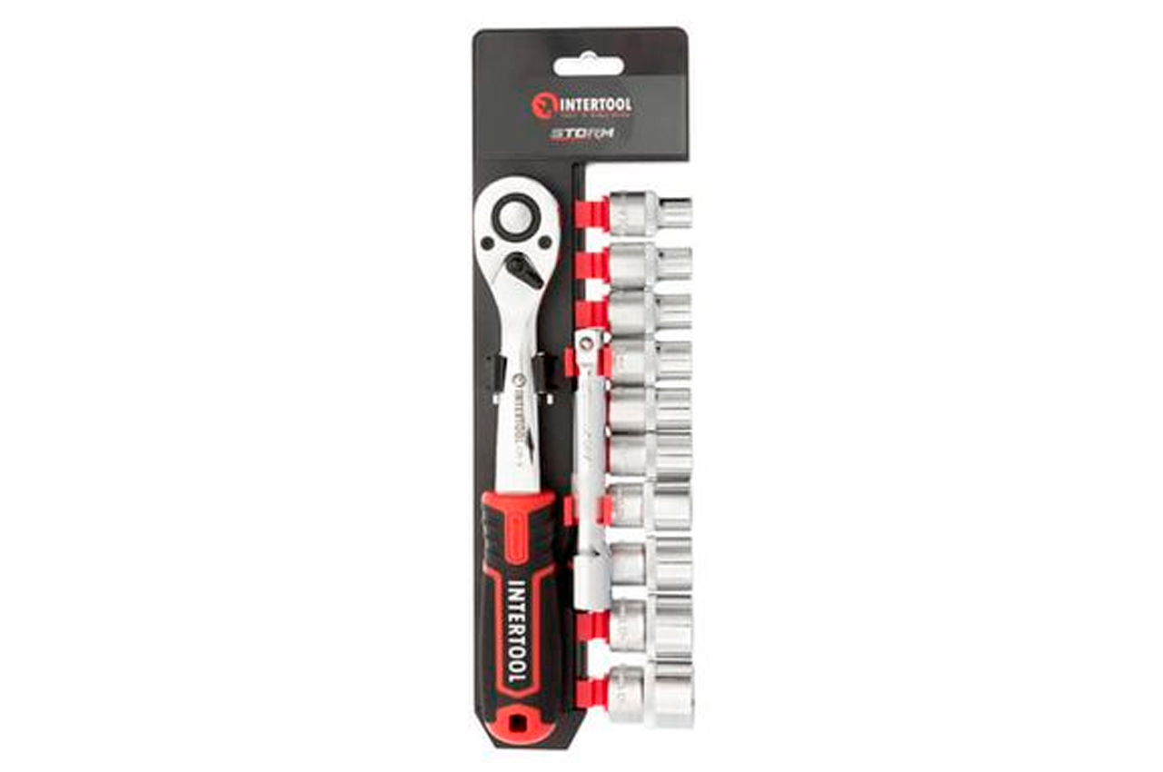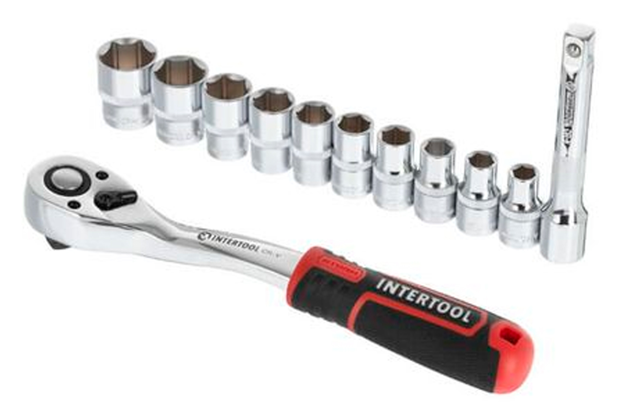 Набор головок с трещоткой и удлинителем предназначен для монтажа и демонтажа различных резьбовых соединений. Привод 1/2” понадобится для выполнения подавляющего большинства работ, связанных с ремонтом оборудования, авто-, мото-, велотехники, а также прочих работ в быту и в гараже каждого автолюбителя и домашнего мастера. В наборе самые популярные размеры торцевых головок, трещотка и удлинитель для работы в труднодоступных местах. Особенности: Комплект на долгие годы . Все инструменты изготовлены из высококачественной Cr-V стали. Благодаря прочности и современным технологиям производства инструменты отличаются длительным сроком службы, стойкостью к повышенным нагрузкам, а также высокой точностью изготовления. Надежная трещоточная рукоятка . Механизм трещотки и все его комплектующие изготовлены в Тайване - это прочный и надежный инструмент, с мягким ходом храпового механизма. Удобное хранение . Инструменты размещаются в компактном держателе-переноске, не выпадают и не теряются во время транспортировки и хранения. Материал изготовления Все инструменты изготовлены из прочной и выносливой Cr-V стали. Отличаются длительным сроком службы, имеют запас прочности и устойчивы к нагрузкам. Двухслойное никелевое покрытие обеспечивает антикоррозионные свойства инструментов. Торцевые головки и трещотка Механизм трещотки на 72 зуба изготовлен в Тайване. Отличается плавным ходом храпового механизма, а также прочностью и износостойкостью. Быстрый сброс головок и наличие реверса упростят и во множество раз ускорят работу мастера. Трещотка имеет изогнутую рукоятку для работы в труднодоступных местах. Ручка с резиновой накладкой для максимального хвата, не скользит и не выпадает из ваших рук. Головки туго сидят на посадочном квадрате трещотки 1/2", не спадают и плотно прилегают к поверхности крепежа. На каждой головке нанесены насечки для предотвращения скольжения в грязных руках или в рукавицах. Квадрат: 1/2"