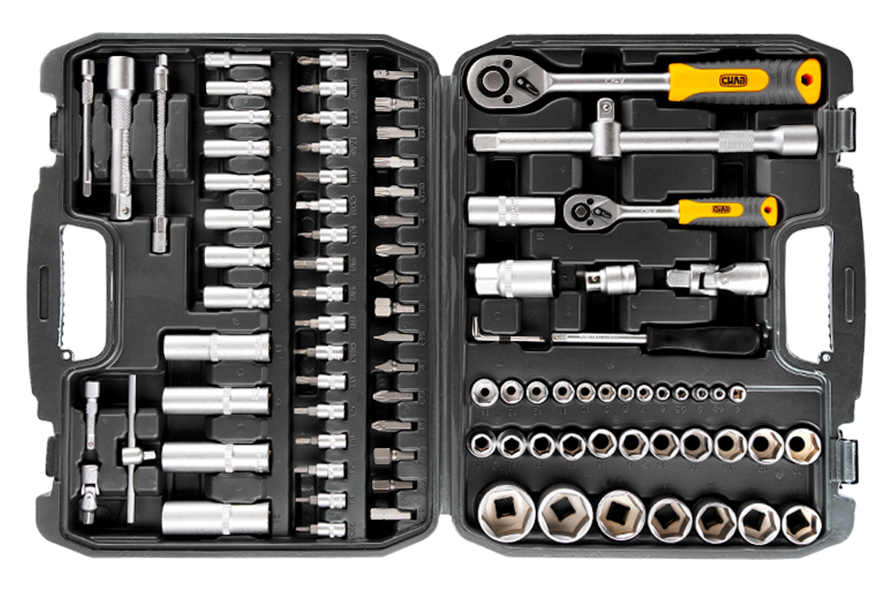 Набор инструмента Сила - 1/4" x 1/2" x 94 ед. зеленый. Набор ручных инструментов со сменными насадками в комплекте. Набор насадок CrV 1/4, 1/2 (90Т) (94шт) (инструментов) торцевых c трещоткой APRO Удлинитель1/2": 125, 250мм; 1/4": 50, 100мм, гибкий 150 мм Шарнир карданный1/2"; 1/4" Материалхром-молибденовая сталь Зубья в трещотке90 Насадки свечные1/2": 16; 21мм Переходник1/4" 30 мм ВоротокТ-образный 1/2", 115 мм 1/4" Биты 5/16"ТХ: 40, 45, 50, 55; PD6 3.4; PZ: 3, 4; FD: 8, 10, 12; НЕХ: 8, 10, 12, 14 мм Биты 1/4"ТХ: 8, 10, 15, 20, 25, 30; PD: 1, 2; PZ: 1, 2; FD: 4, 4,5, 7 мм; НЕХ: 3, 4, 5, 6 мм Битодержатель1/2" х 5/16" Насадки 1/44, 4,5, 5, 5,5, 6, 7, 8, 9, 10, 11, 12, 13, 14 мм Насадки 1/210, 11, 12, 13, 14, 15, 16, 17, 18, 19, 20, 21, 22, 23, 24, 27, 30, 32 мм Ключи шестигранные1.5, 2, 2.5мм