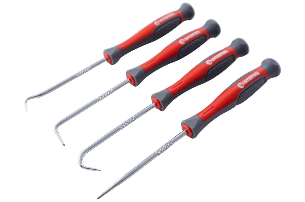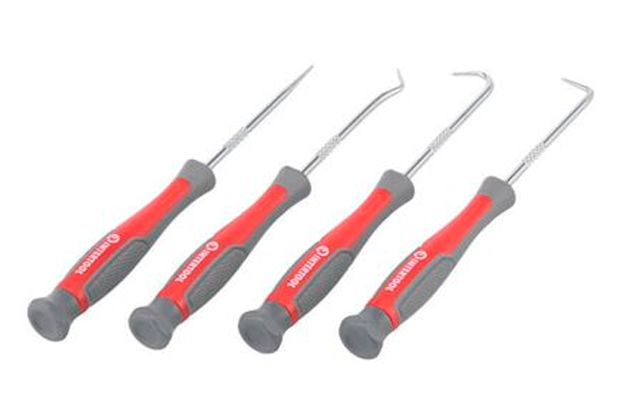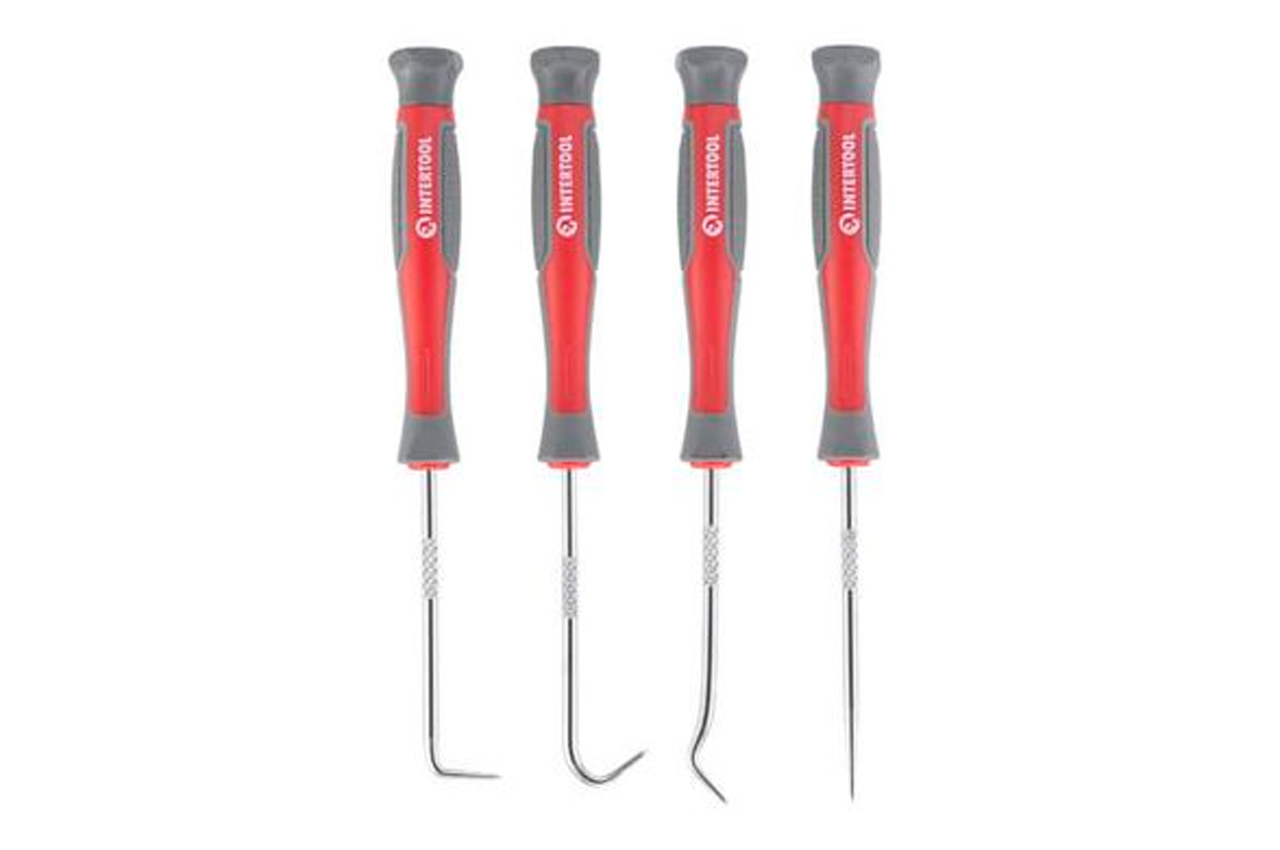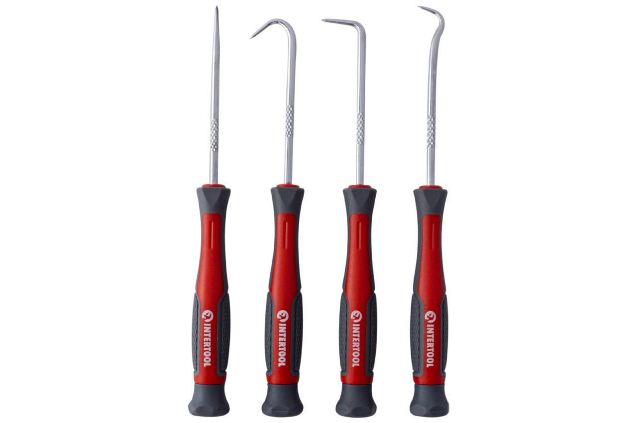 Набор крючков состоит из четырех наиболее востребованных типов инструментов. Такие шило-крючки широко используются в автоделе: для демонтажа резинок, сальников, уплотнительных колец, а также везде, где необходимо подлезть тонким наконечником в труднодоступные места. Крючки изготовлены из прочной Cr-V стали. Прорезиненная двухкомпонентная рукоятка удобно лежит в руке и не ускользает из ладони. Комплектация Шило Крюк Гак 45 Крюк 90