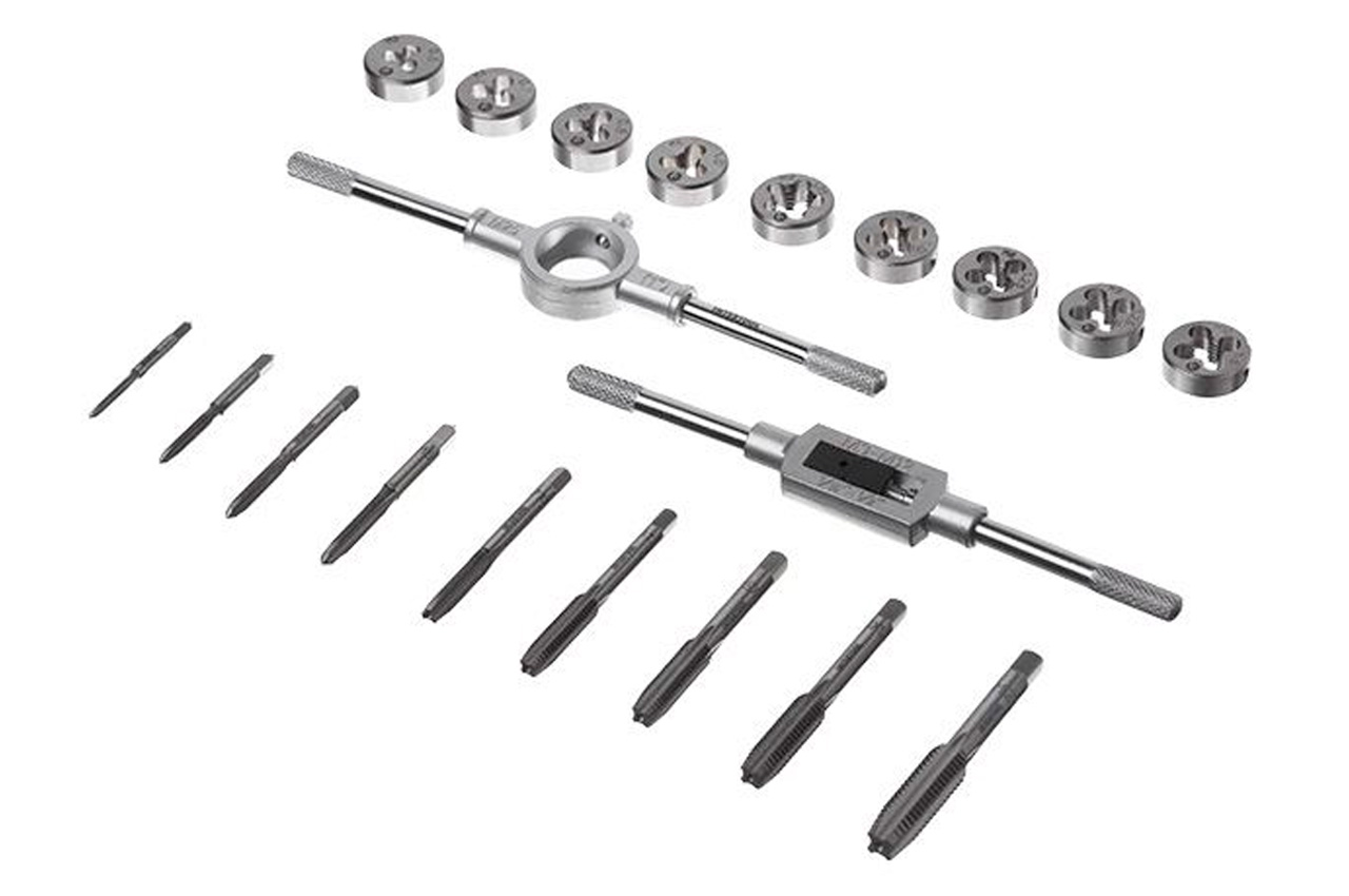 Набор метчиков и плашек "Intertool" профессиональный (М3, М4, М5, М6, М7, М8, М10 и М12) + плашкодержатель и метчикодержатель. Всего в наборе 20 предметов. Размеры: М3x0.5, М4x0.7, М5x0.8, М6x1.0, М7x1.0, М8x1.25, М9x1.25, М10x1.5, М12x1.75; Количество единиц в наборе: 20 ед.
