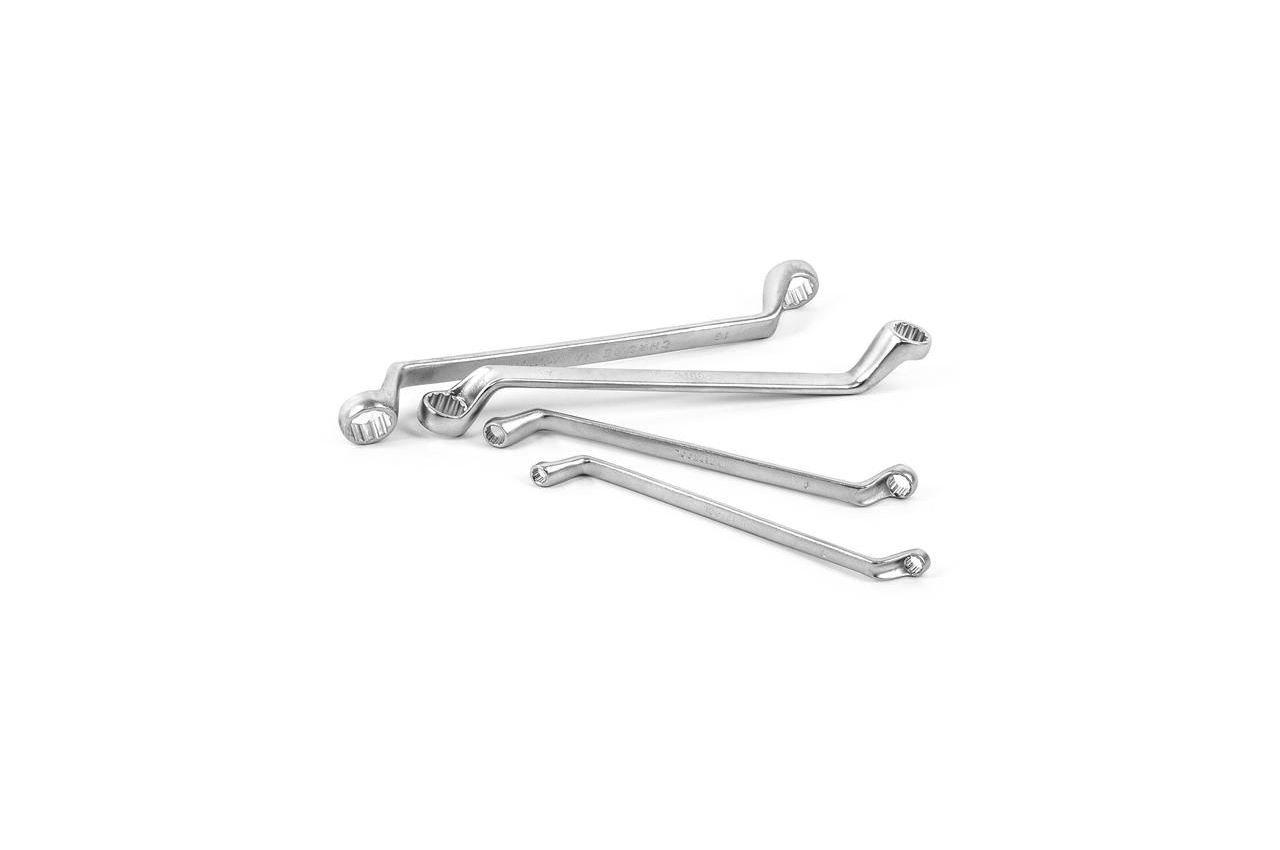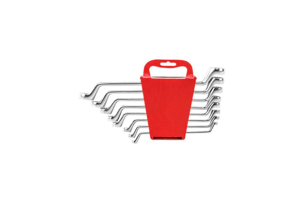Набор из восьми качественно выполненных накидных ключей. Размерная линейка: 6х7, 8х9, 10х11, 12х13, 14х15, 16х17, 18х19 и 20х22 мм. Ключи поставляются в удобном пластиковом держателе с отверстием для подвешивания. Хром-ванадиевая сталь. Количество ключей в наборе: 8 ед.; Размеры: 6-22 мм