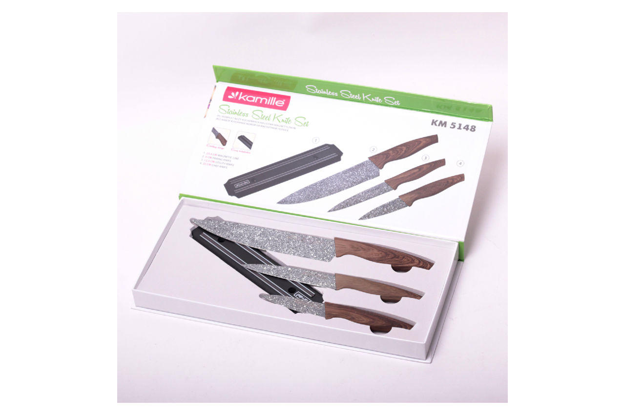 Набор кухонных ножей создан по наиболее современным и модным технологиям и тенденциям. Он вызовет восторг даже у самого требовательного покупателя. Набор кухонных ножей станет украшением Вашей кухни и придаст неповторимость Вашему интерьеру.