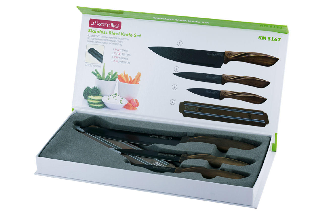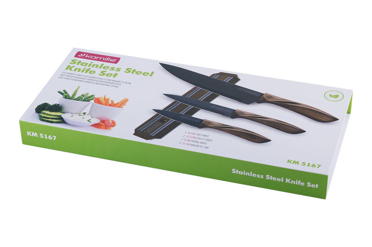 Набор кухонных ножей создан по наиболее современным и модным технологиям и тенденциям. Он вызовет восторг даже у самого требовательного покупателя. Набор кухонных ножей станет украшением Вашей кухни и придаст неповторимость Вашему интерьеру.