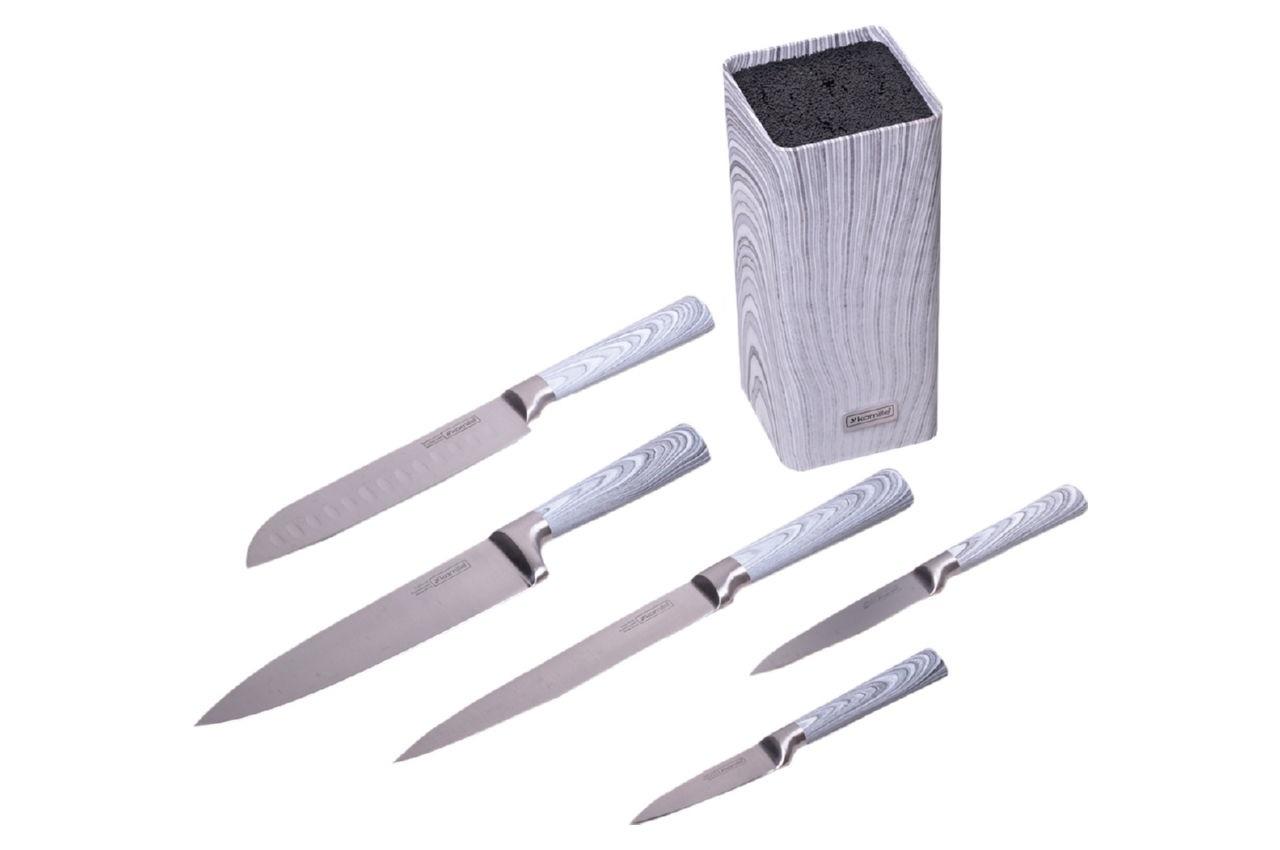 Набор ножей Kamille – то, без чего нельзя обойтись при приготовлении пищи. За тысячи лет кулинарной истории человечество изобрело самые разные виды ножей: универсальные, отделочные, обвалочные или филейные. Хорошие кухонные ножи всегда ценились очень высоко.
