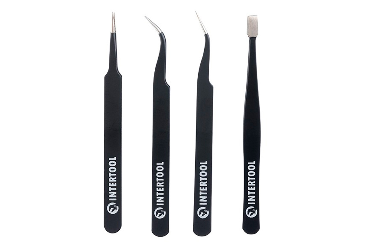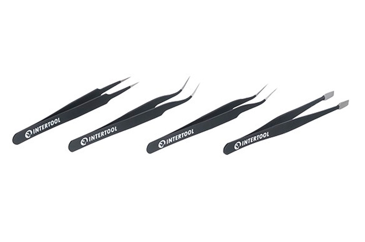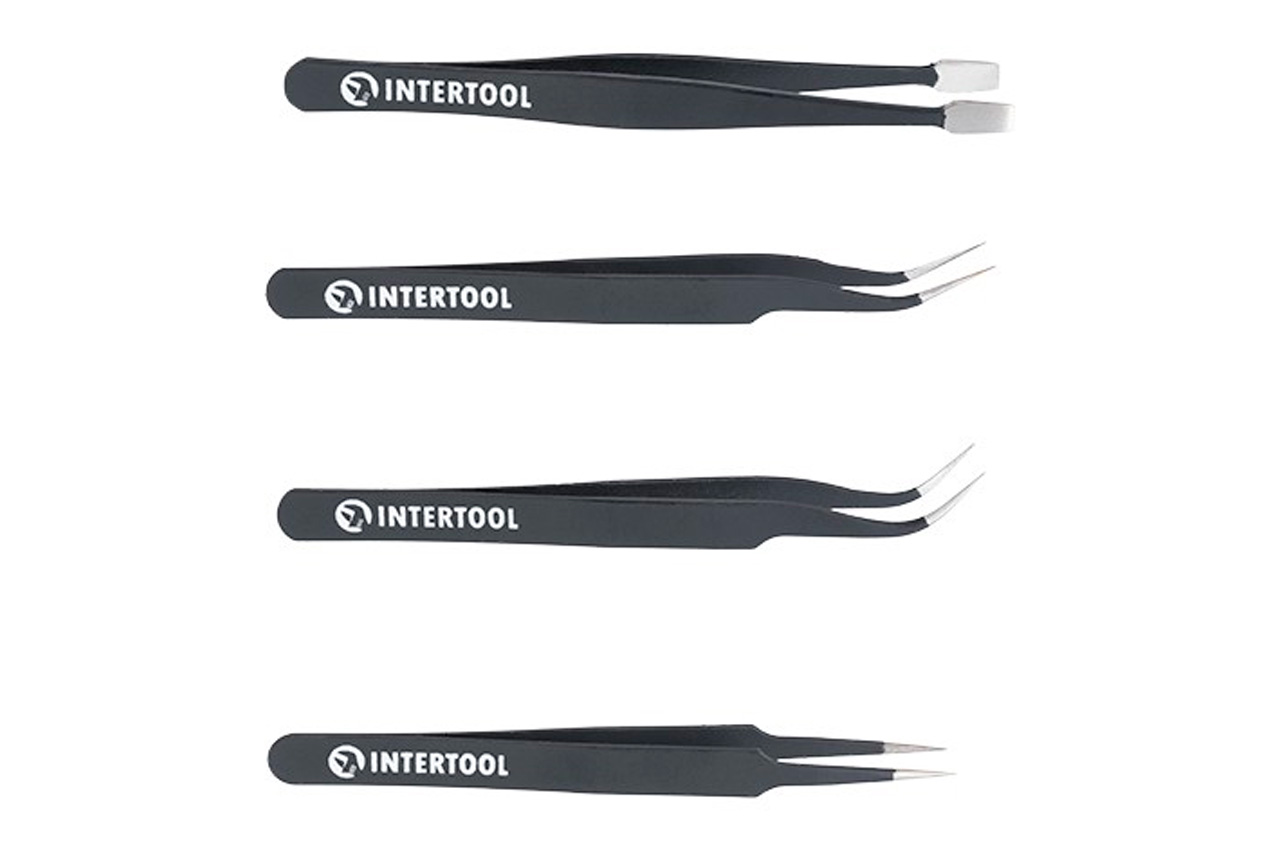 Набор пинцетов радиотехнических Intertool - 120-123мм (4шт)