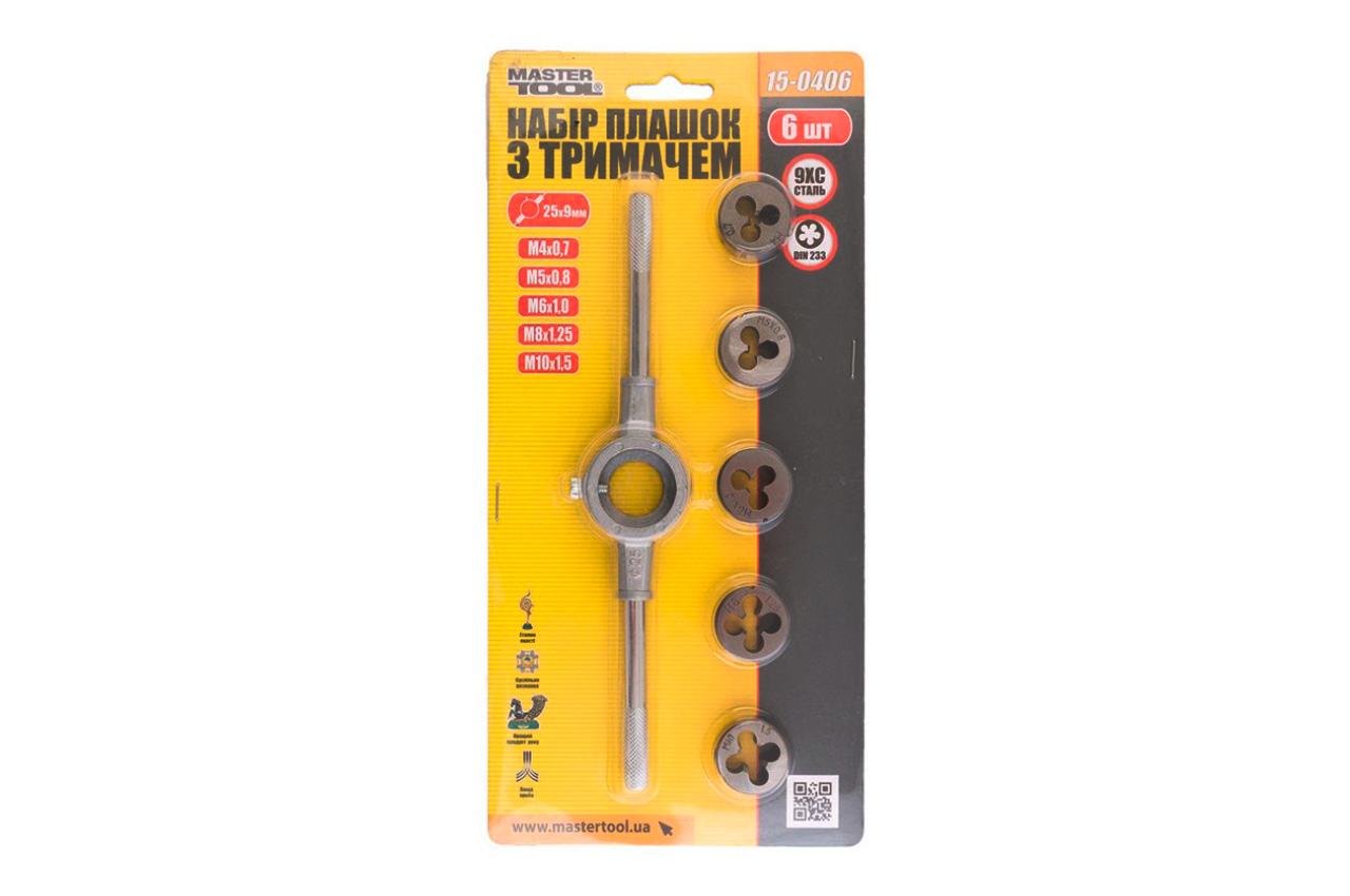 Набор плашек с держателем 6 эл. (M4, M5, M6, M8, M10).