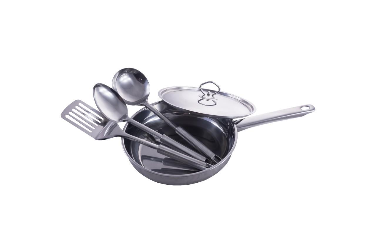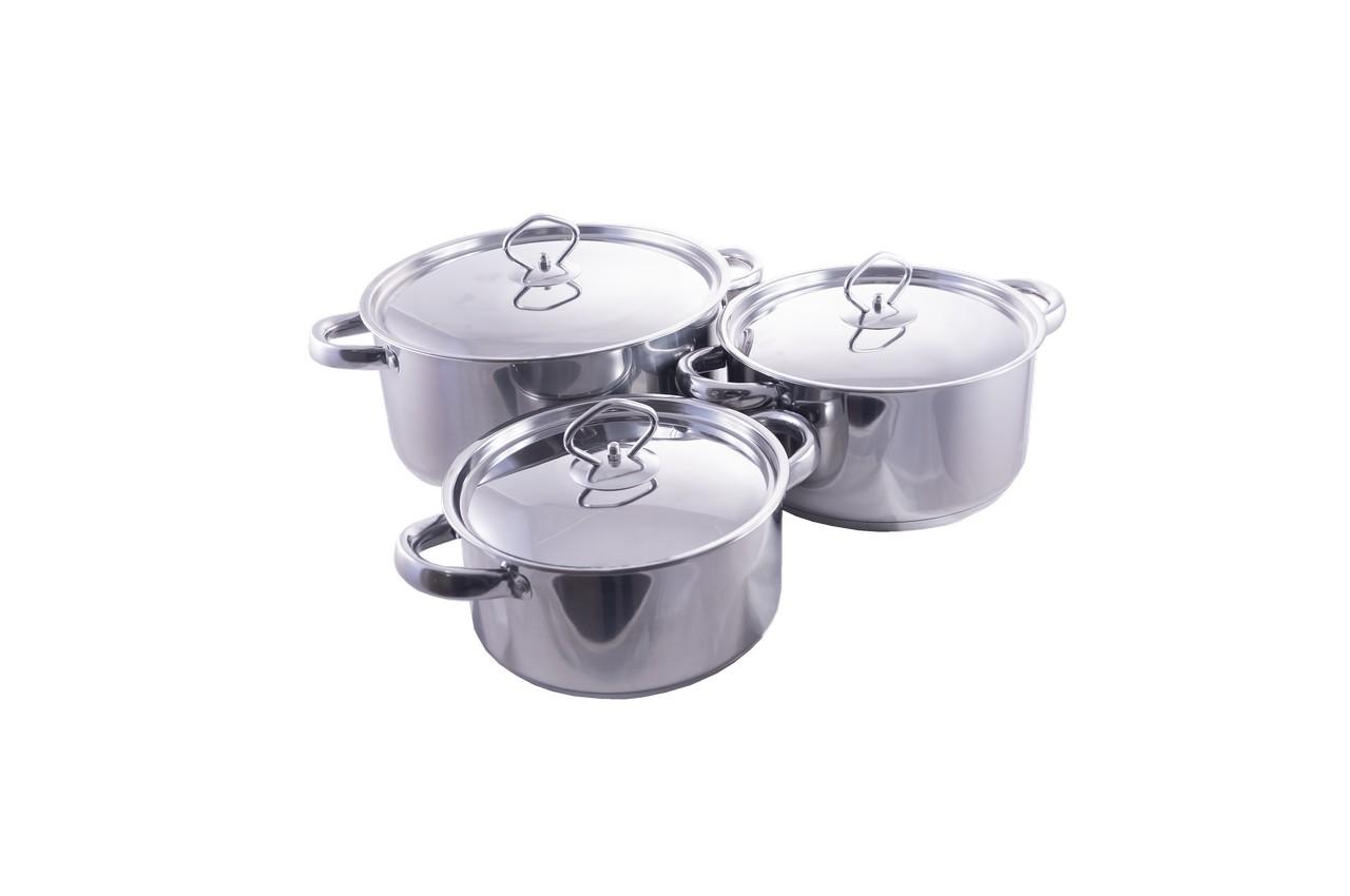 Набор посуды нержавеющей Empire из 15 единиц от интернет-магазина Cylinder – хороший вариант для домашней кухни. Такие емкости отличаются повышенной устойчивостью к ударам и царапинам. За счет плотного дна пища в них не подгорает, а уже готовые блюда сохраняют тепло минимум 35 минут. Особенно вкусными в посуде Empire разного диаметра получаются супы и гарниры. Защитного покрытия здесь нет, так что даже через 5 лет регулярного использования хозяюшкам не придется выводить ржавчину с металла. В отличие от алюминиевых кастрюль, емкости из нержавейки не образуют трещин, где обычно скапливаются микробы. В комплект входят 4 кастрюли, сотейник, 2 сковороды, половник, лопатка, ложка и 5 крышек.