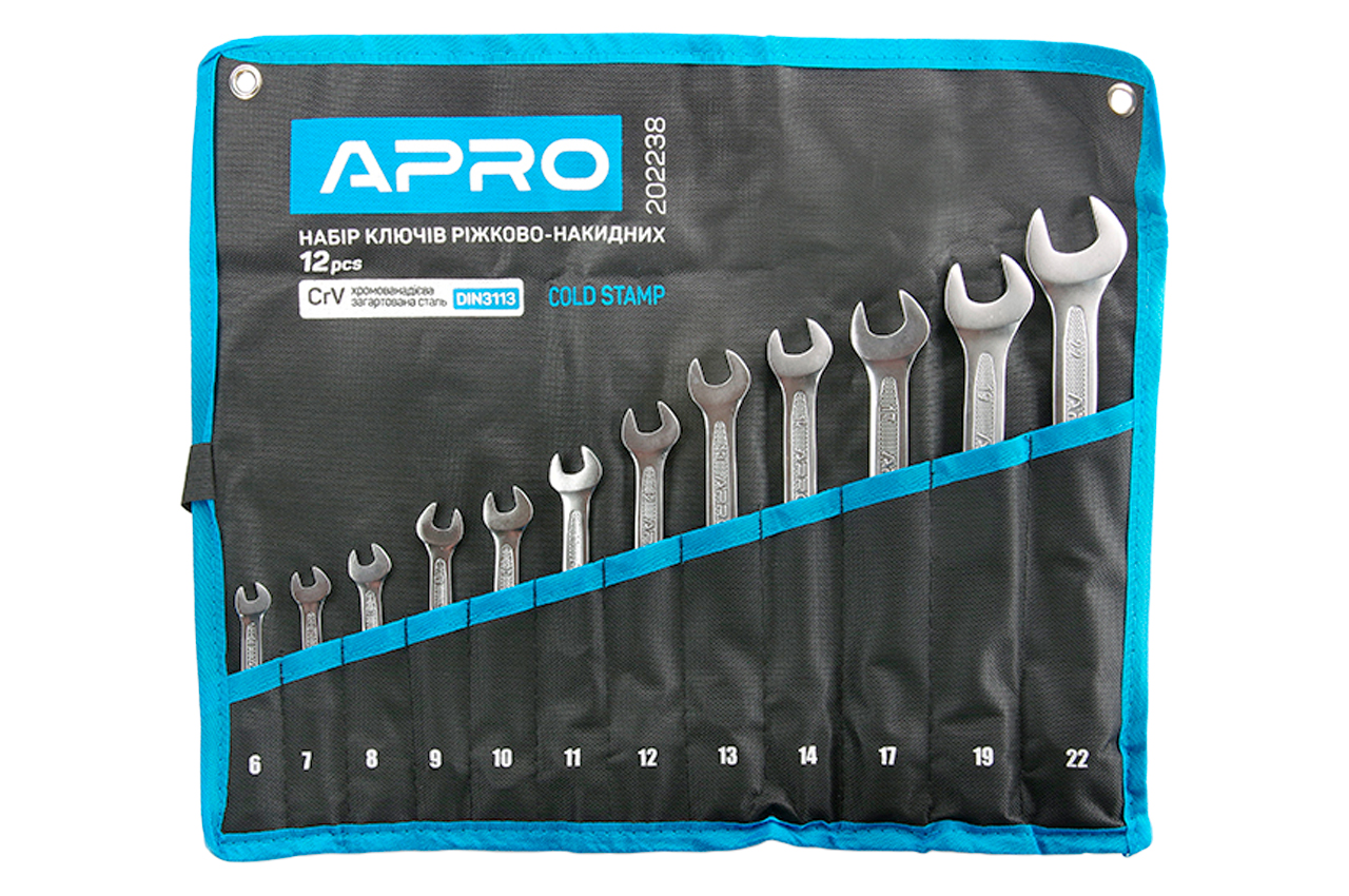 Набор рожково-накидных ключей Apro - 6-22мм в чехле DIN3113 (12шт)