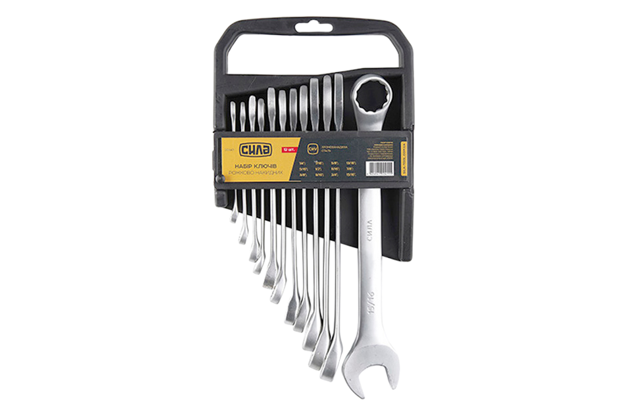 Набор рожково-накидных ключей Сила – отличный набор из 12 комбинированных ключей, каждый из которых представляет собой сочетание рожкового и накидного. Комбинированные ключи используются для монтажных, слесарных работ. Набор: 1/4“, 5/16“, 3/8“, 7/16“, 1/2“, 9/16“, 5/8“, 11/16“, 3/4“, 13/16“, 7/8“, 15/16“