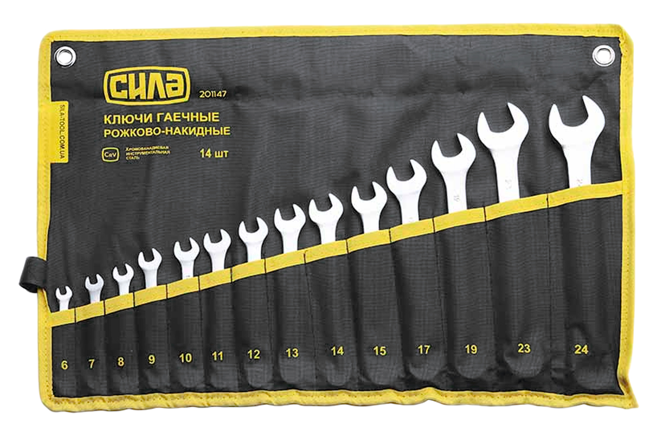 Набор рожково-накидных ключей Сила - 14 шт. (6-24 мм) в чехле