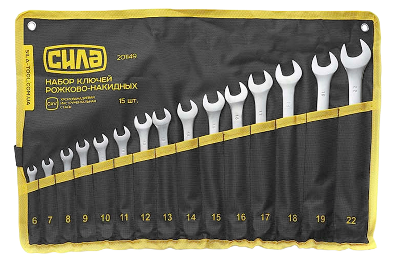 Набор рожково-накидных ключей Сила - 15 шт. (6-22 мм) в чехле