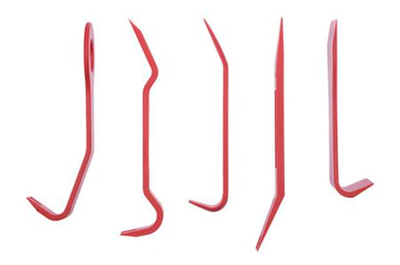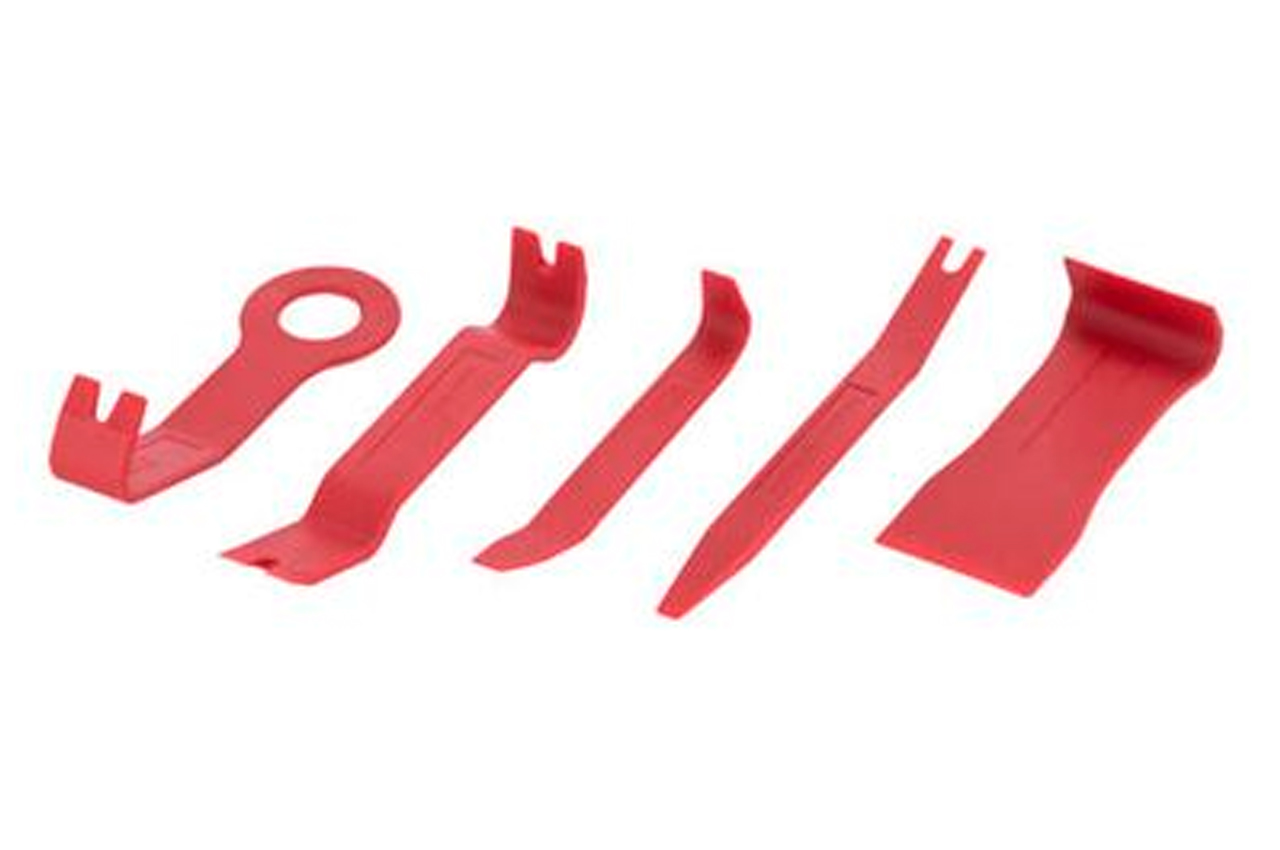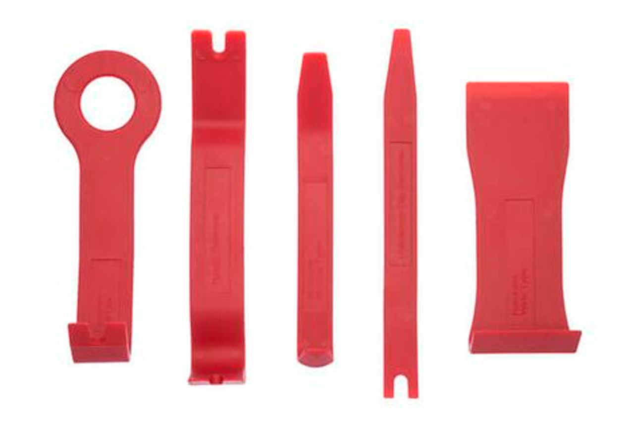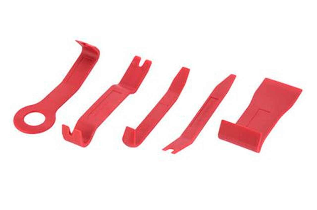 Комплект съемников АТ-0150 предназначен для быстрого и качественного демонтажа обшивки салона, декоративных панелей, молдингов и других элементов интерьера. Данный набор состоит из самых популярных съемников, которые отлично подойдут для разборки салона автомобилей. В набор входят 5 предметов разной формы: с круглыми, острыми, широкими и узкими краями, позволяющими работать с большинством панелей обшивки. На съемниках есть специальные прорези для демонтажа крепежного клипс. Все съемники очень прочные и долговечные, ведь изготовлены из нейлона, что отлично выдерживает нагрузку на сжатие и растяжение.