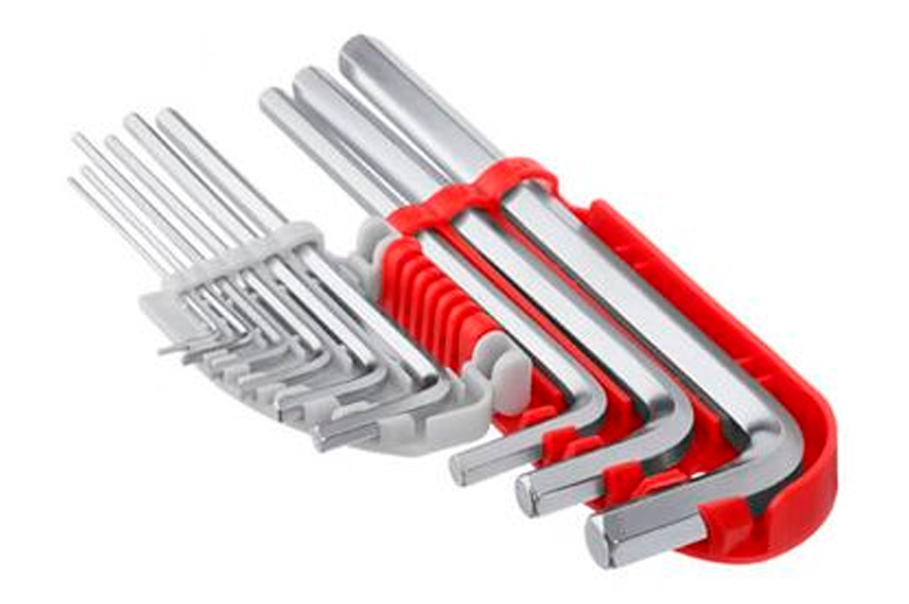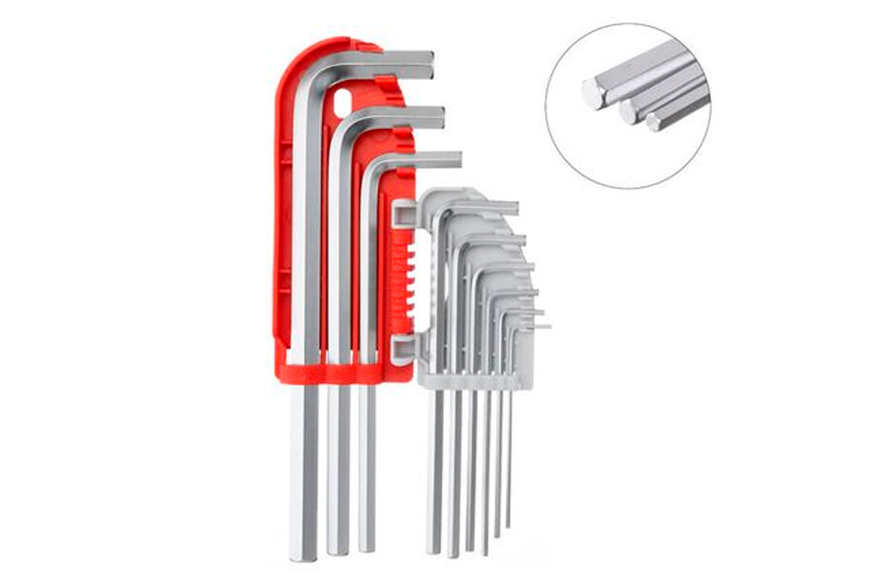 Г-образные шестигранные ключи HT-1803 применяются для выполнения монтажа и демонтажа винтов и болтов с внутренним шестигранником, размером от 1,5 до 10 мм. Положите в бардачок этот набор из 9 ключей, и он обязательно принесёт Вам пользу. Изготовлены из стали S2, имеют литую форму и никелированное покрытие - все это обеспечивает высокие износостойкие показатели в процессе эксплуатации. Ключи помещены в специальный держатель, который обеспечивает удобство хранения. Особенности Легко справляются со своей задачей и не деформируются т.к. изготовлены из высококачественной инструментальной стали S2. Быстрый выбор нужного ключа благодаря открытому футляру для хранения с маркировкой. Дополнительная износостойкость и твёрдость шестигранных ключей благодаря никелированному покрытию. Точная посадка в крепеже обеспечивается многоступенчатой технологией обработки рабочих граней. Типы ключей: Г-образные шестигранные; Покрытие: pearl nickel; Количество ключей: 9 ед.; Размеры ключей: 1,522,53456810 мм; Твердость по шкале Роквелла: 58-62 HRC