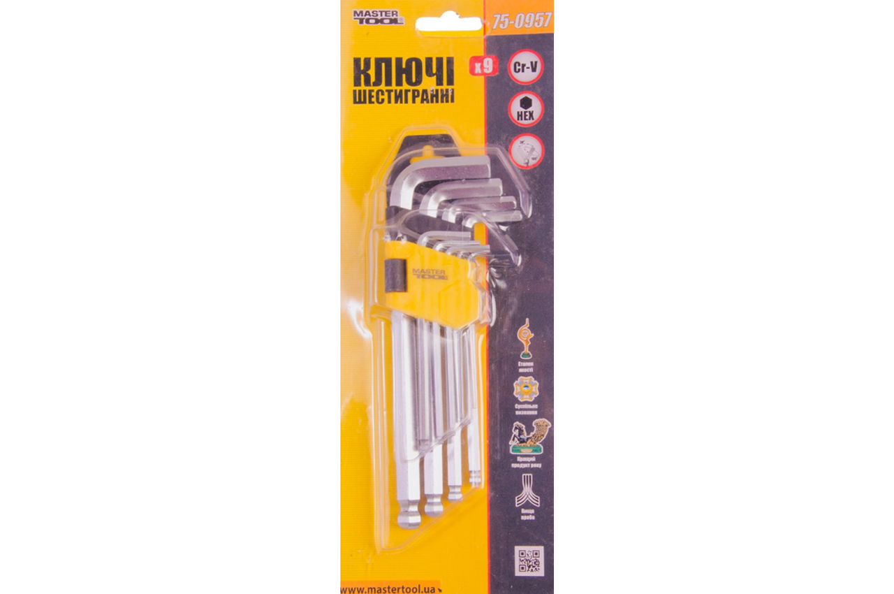 Набор шестигранных ключей Mastertool - 9 шт., с шаром удлиненные