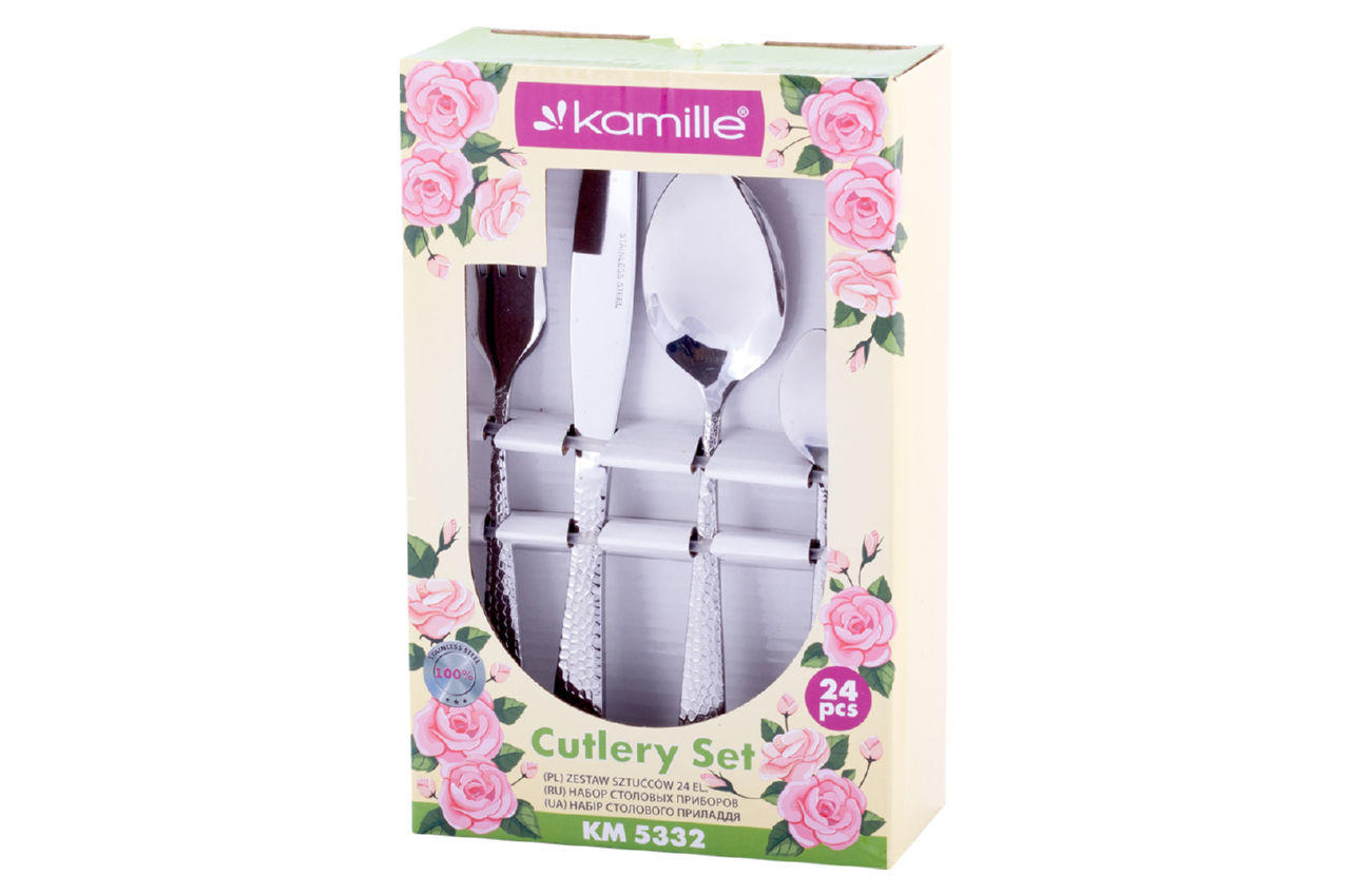 Неотъемлемой составляющей при сервировке стола являются приборы, которые занимают определенное место возле каждого приглашенного гостя. Торжество будет более изысканным, если Ваш стол украсят красивые столовые приборы Kamille. Благодаря своему яркому дизайну, такие столовые приборы будут не только дополнять красотой Ваши блюда, но и помогут создать хорошую атмосферу для ужина.