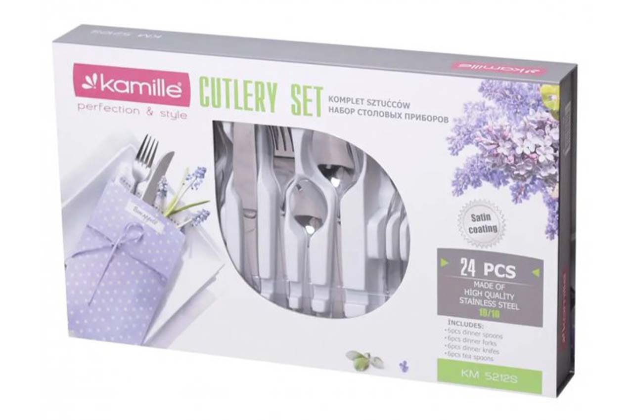 Неотъемлемой составляющей при сервировании стола являются приборы, которые занимают определенное место у каждого приглашенного гостя. Торжество будет более изысканным, если Ваш стол украсят красивые столовые приборы Kamille. Благодаря своему яркому дизайну такие столовые приборы не только дополнят красотой Ваши блюда, но и помогут создать хорошую атмосферу для ужина.
