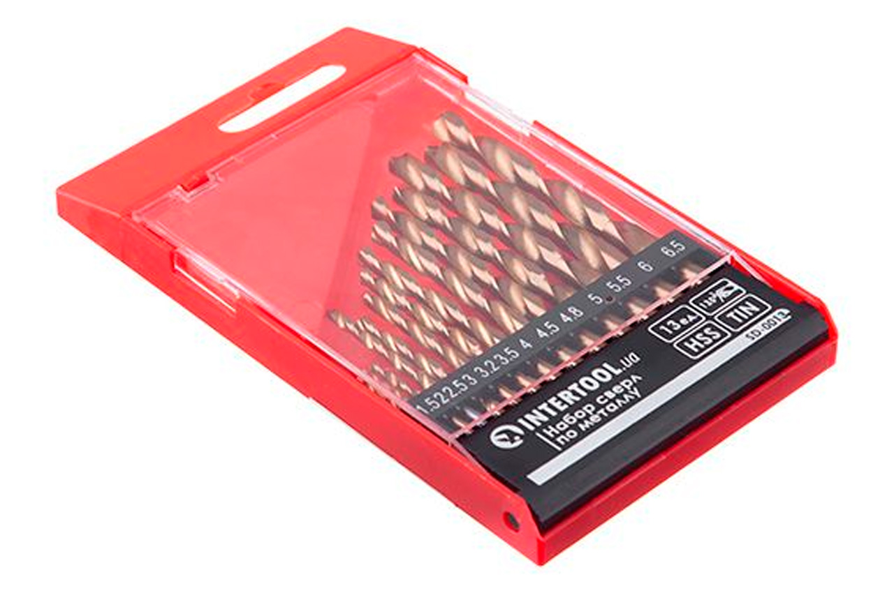 Набор сверл по металлу Intertool - 13 шт. (1,5-6,5 мм), титан