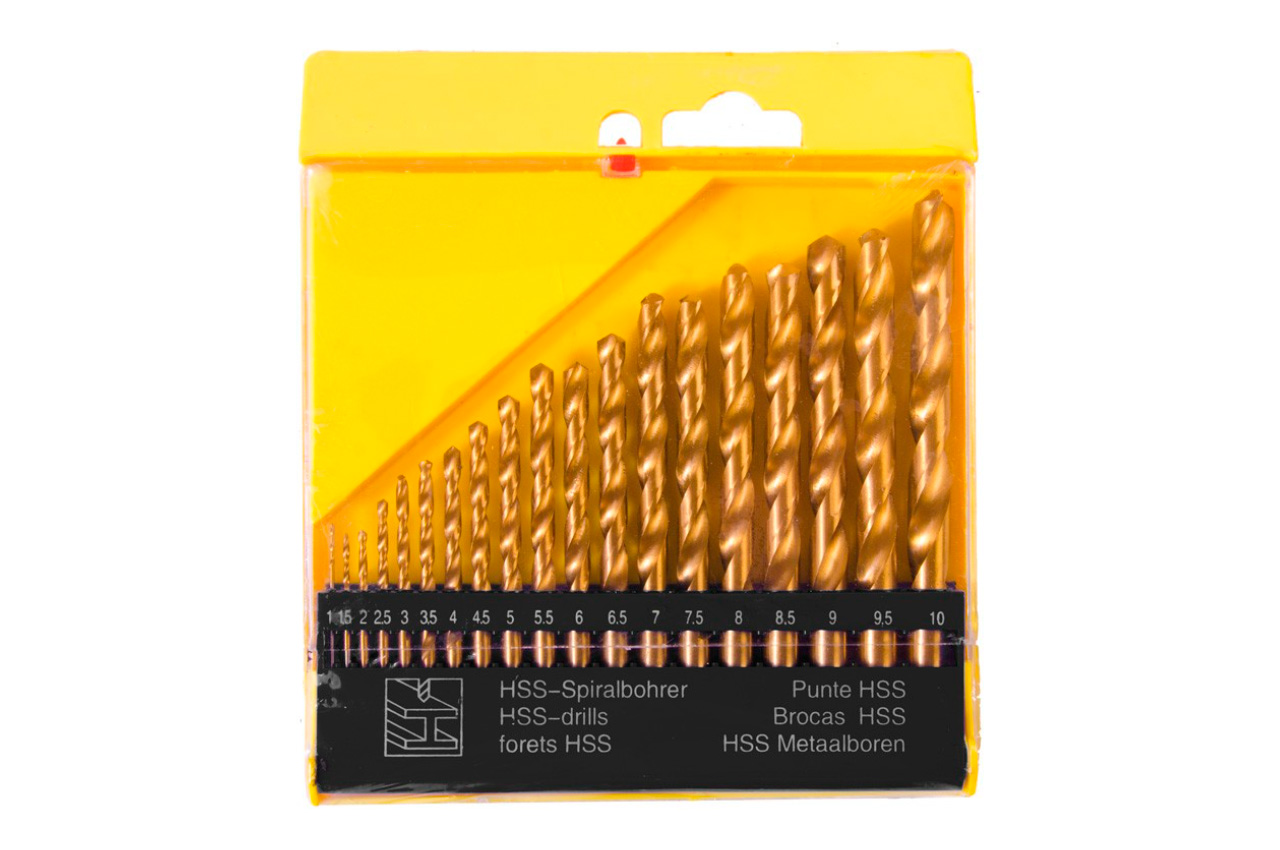 Набор сверл по металлу Mastertool - 19 шт. (1-10 мм), титан