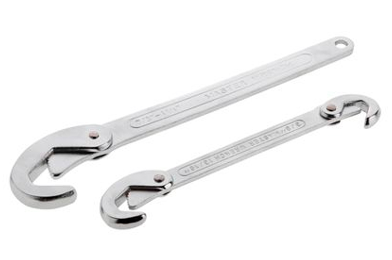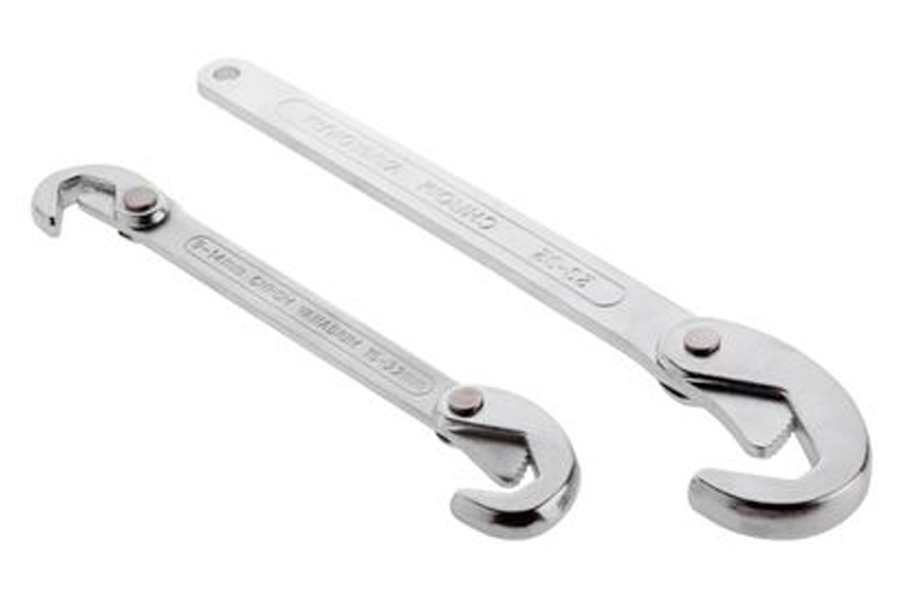 При использовании данного вида ключей, нет необходимости снимать инструмент с рабочей поверхности после каждого поворота. Он изготовлен из высококачественной инструментальной стали, что гарантирует высокую износостойкость и защиту от коррозии в процессе работы. Большой ключ рассчитан на 23-32 мм, малый на 9-14 мм и 15-22 мм.