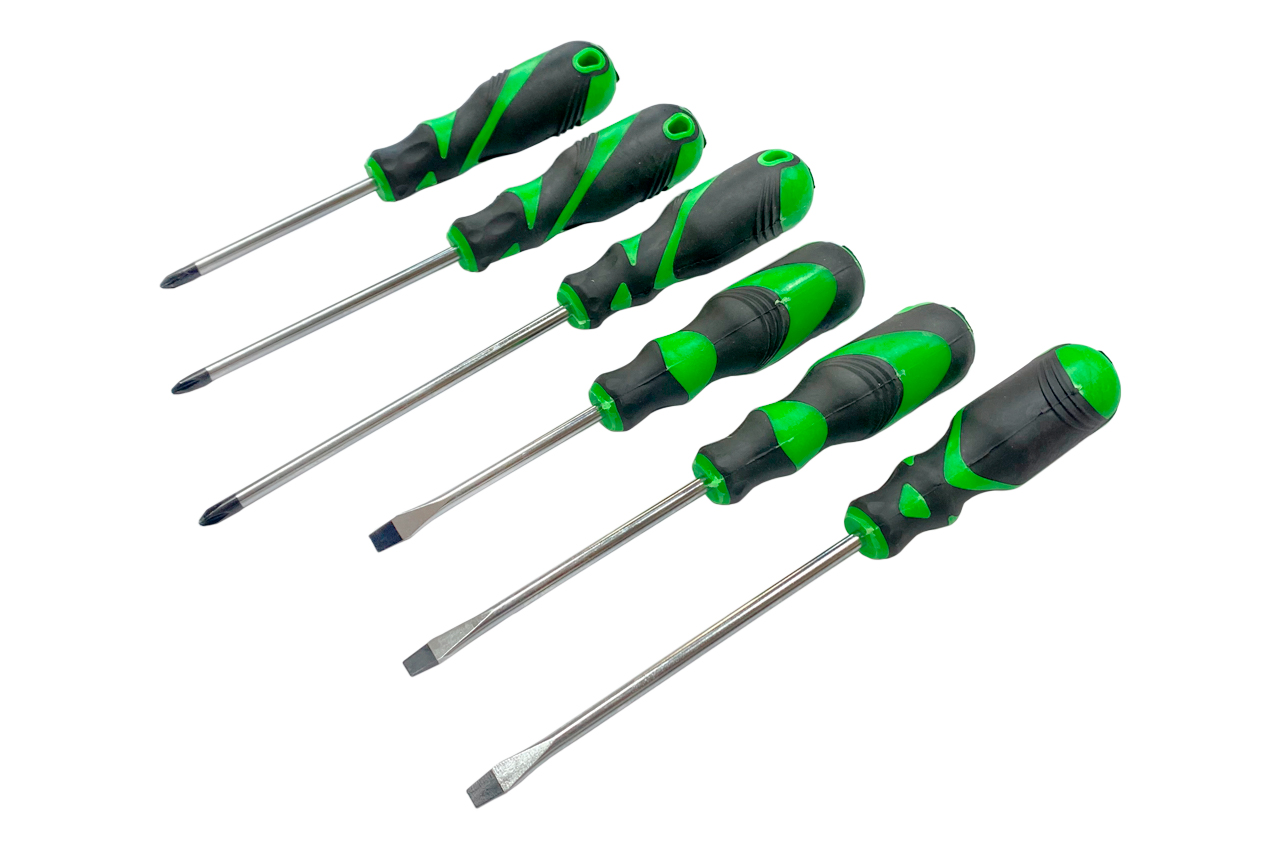 Набор зеленых отверток, обрезиненные ручки - 6 шт
